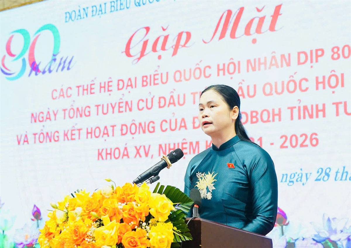 Phát biểu chào mừng tại buổi gặp mặt, đồng chí Hà Thị Nga, Ủy viên Trung ương Đảng, Bí thư Tỉnh ủy, Trưởng Đoàn đại biểu Quốc hội tỉnh Tuyên Quang khẳng định buổi gặp mặt là dịp để tri ân, tôn vinh những đóng góp của các thế hệ đại biểu Quốc hội tỉnh Tuyên Quang. Đây cũng là dịp để cùng nhìn lại chặng đường vẻ vang 80 năm của Quốc hội Việt Nam, từ tiền thân là Quốc dân Đại hội Tân Trào diễn ra tại đình Tân Trào, xã Tân Trào, huyện Sơn Dương, tỉnh Tuyên Quang vào ngày 16/8/1945.