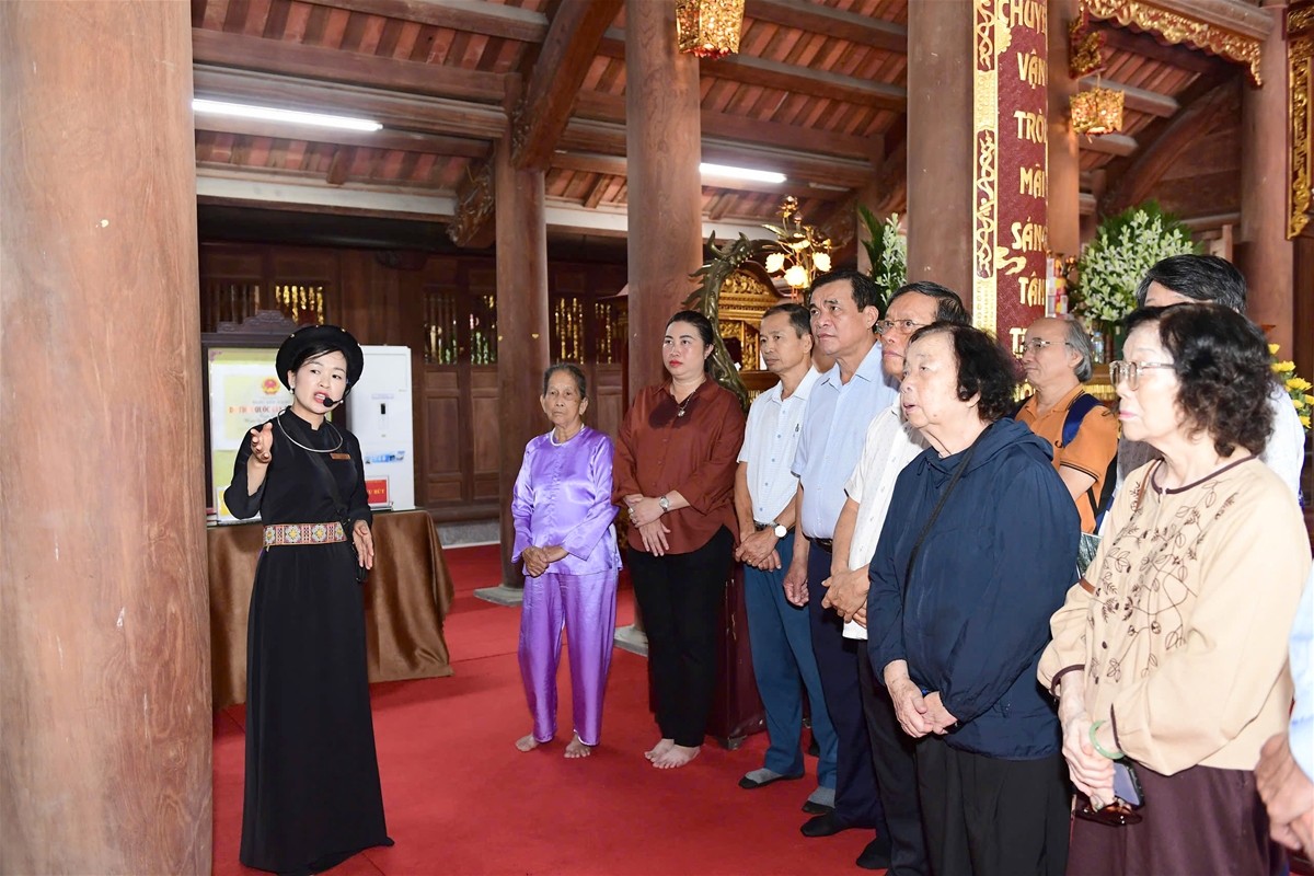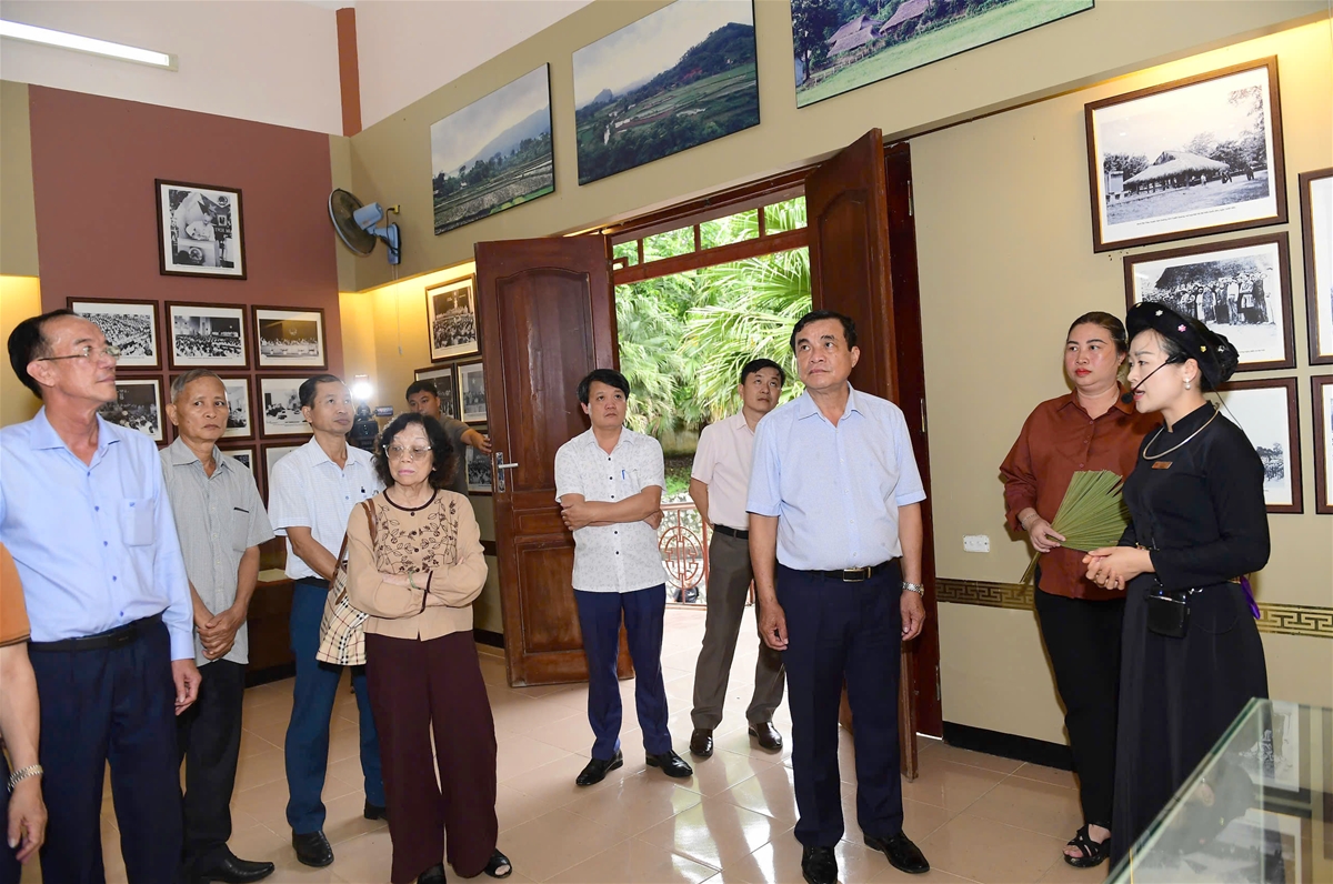 Các đại biểu tham quan Nhà lưu niệm trong Khu di tích Ban Thường trực Quốc hội, xã Trung Yên.