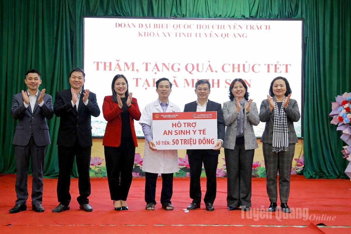 Tại chương trình, Đoàn ĐBQH khóa XV tỉnh đã trao 220 suất quà cho các gia đình chính sách, hộ nghèo, hộ có hoàn cảnh đặc biệt khó khăn; trao 30 xe đạp cho 30 học sinh nghèo vượt khó. Dịp này, Agribank Chi nhánh Tuyên Quang hỗ trợ 50 triệu đồng phục vụ công tác an sinh y tế cho Trạm Y tế xã Minh Sơn.