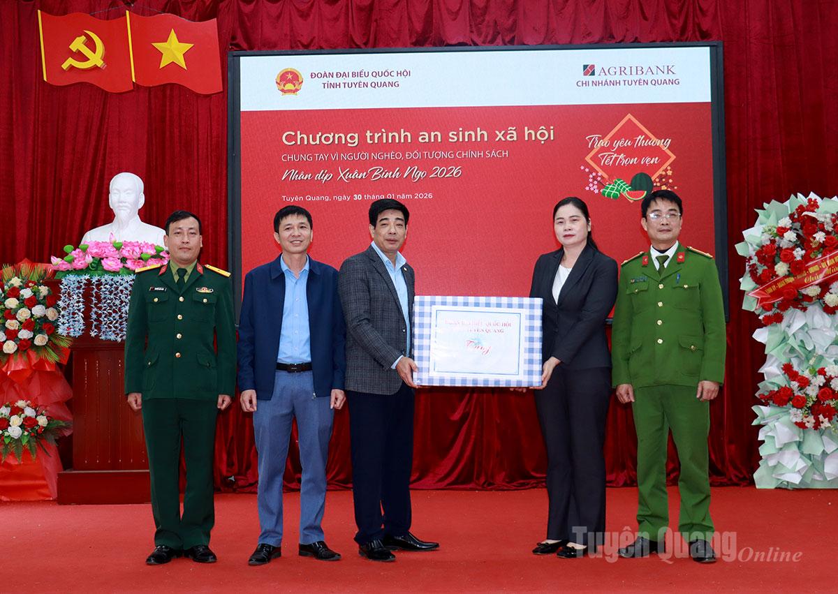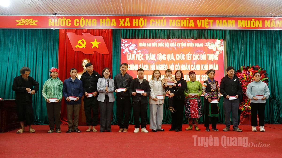 Đoàn ĐBQH khóa XV tỉnh Tuyên Quang đề nghị cấp ủy, chính quyền các địa phương tiếp tục quan tâm, triển khai hiệu quả các chính sách an sinh xã hội, chương trình giảm nghèo bền vững; đồng thời chủ động cân đối nguồn lực, tăng cường xã hội hóa để chăm lo Tết cho các gia đình chính sách, hộ còn nhiều khó khăn, nâng cao đời sống vật chất, tinh thần cho Nhân dân.