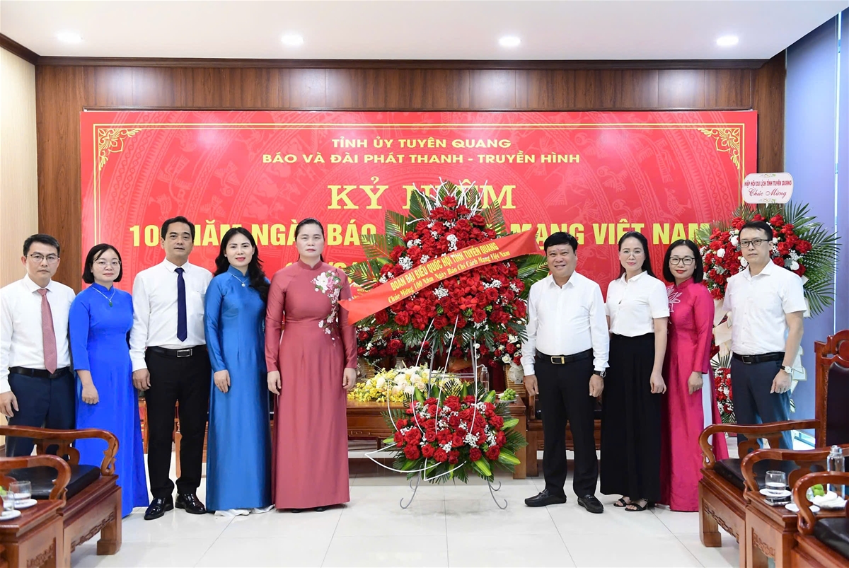Thay mặt Đoàn đại biểu Quốc hội tỉnh, đồng chí Phó Trưởng đoàn Ma Thị Thúy đã trao tặng hoa chúc mừng và cảm ơn sự đồng hành của Báo và Đài Phát thanh - Truyền hình Tuyên Quang với Đoàn đại biểu Quốc hội, các vị đại biểu Quốc hội tỉnh trong công tác thông tin tuyên truyền thời gian qua. Đồng chí cũng gửi lời chúc mừng tốt đẹp đến đội ngũ cán bộ, phóng viên, biên tập viên, phát thanh viên, kỹ thuật viên Báo và Đài Phát thanh – Truyền hình Tuyên Quang nhân kỷ niệm 100 năm Ngày Báo chí cách mạng Việt Nam có ngày truyền thống thật ý nghĩa, luôn giữ “tâm trong, bút sắc” và phát huy tinh thần báo chí cách mạng vẻ vang của tỉnh nhà trong thời đại công nghệ số như hiện nay.