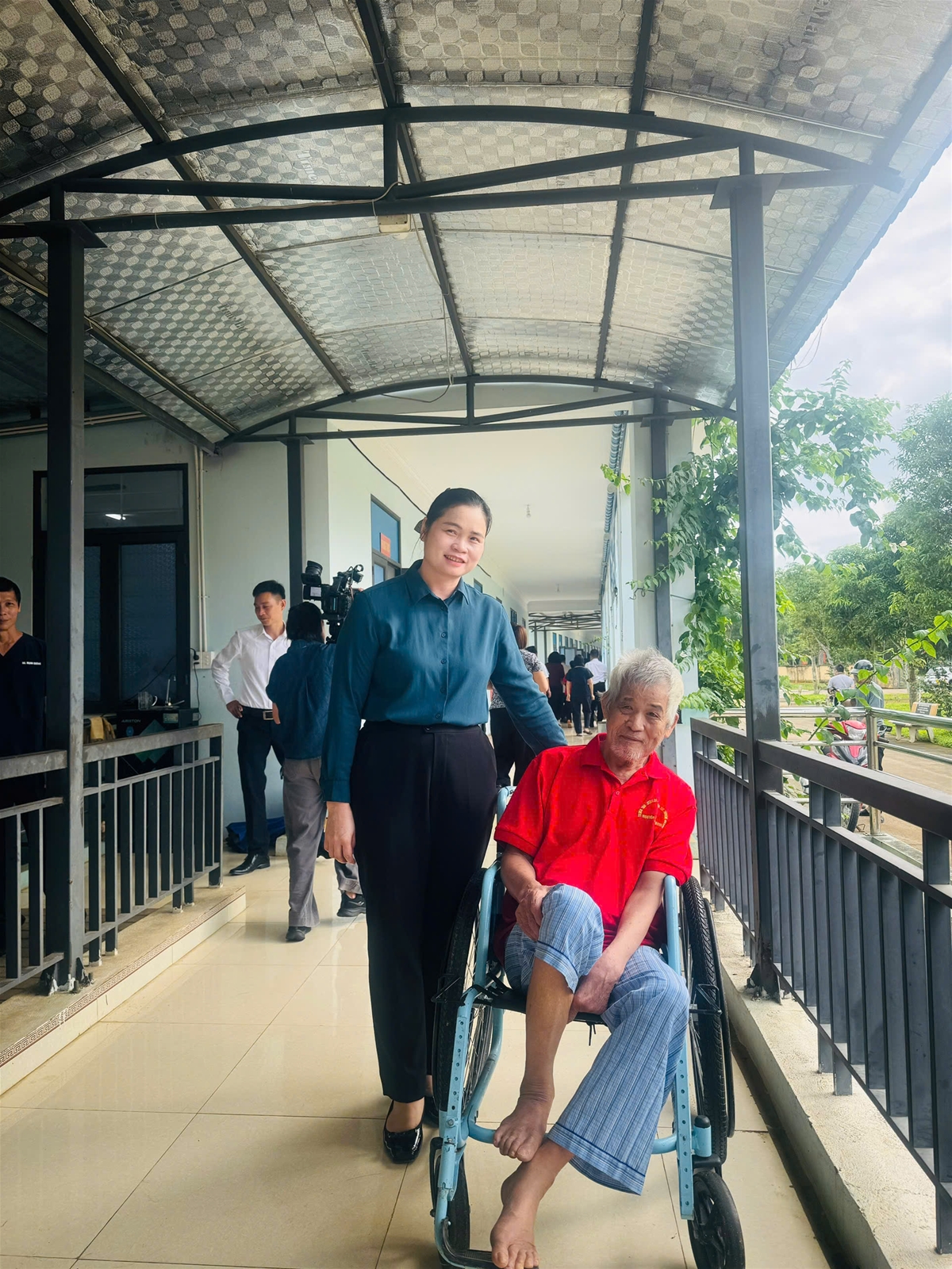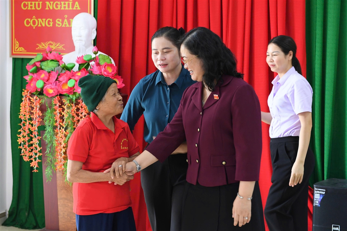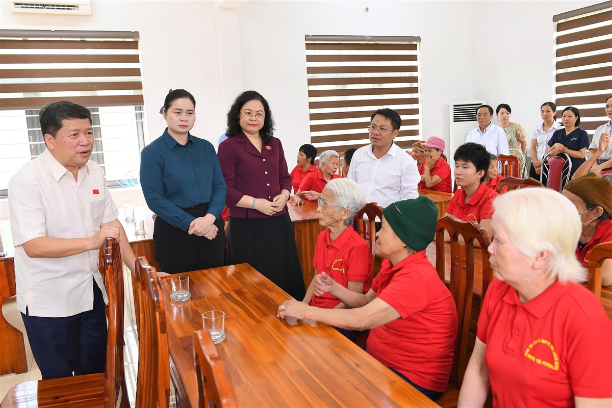Đại biểu Quốc hội Lò Thị Việt Hà và Ma Thị Thuý thăm hỏi người cao tuổi ở Trung tâm Công tác xã hội và Quỹ Bảo trợ trẻ em tỉnh