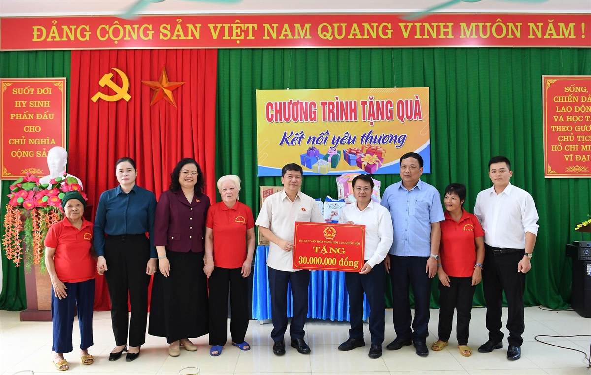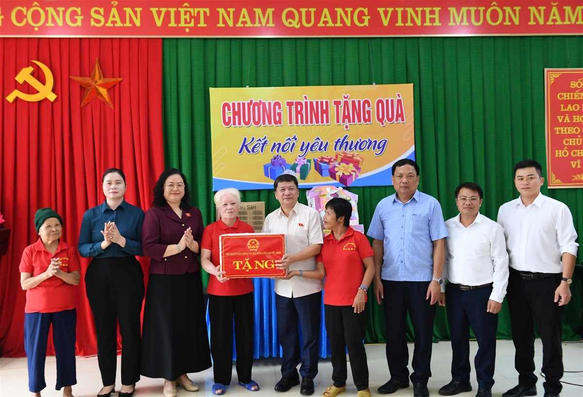 Đồng chí Tạ Văn Hạ, Phó Chủ nhiệm Ủy ban Văn hoá và Xã hội của Quốc hội và ĐBQH tỉnh Tuyên Quang tặng quà