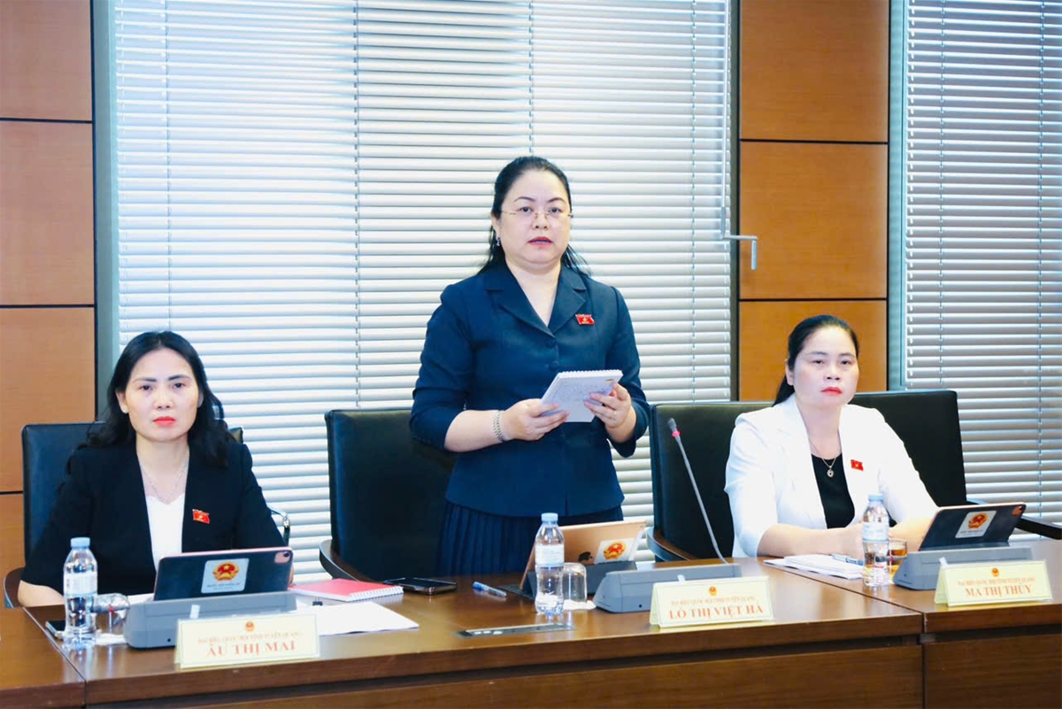Đại biểu Lò Thị Việt Hà phát biểu thảo luận tại tổ