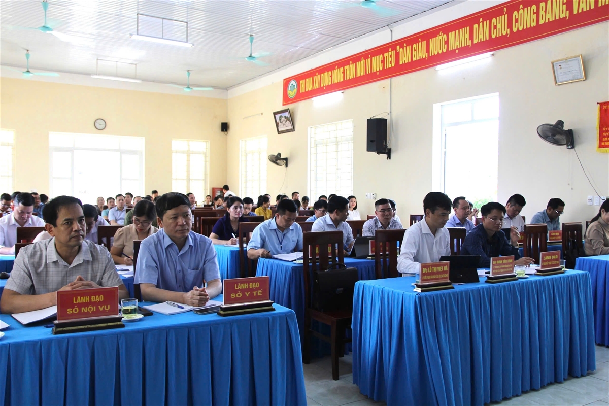 Các vị đại biểu dự buổi tiếp xúc cử tri tại xã Kim Quan.