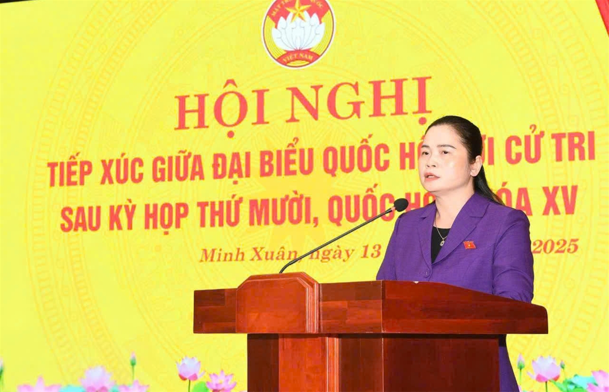 Tại hội nghị, đồng chí Ma Thị Thúy, Ủy viên Ban Chấp hành Đảng bộ tỉnh, Phó Trưởng đoàn đại biểu Quốc hội hoạt động chuyên trách tỉnh thay mặt Đoàn đại biểu Quốc hội tỉnh đã báo cáo với cử tri kết quả của Kỳ họp thứ 10, Quốc hội khóa XV. Theo đó, sau 40 ngày làm việc liên tục, khẩn trương, nghiêm túc, với tinh thần khoa học, đổi mới, trách nhiệm cao, Kỳ họp thứ 10 đã hoàn thành toàn bộ nội dung, chương trình đề ra.