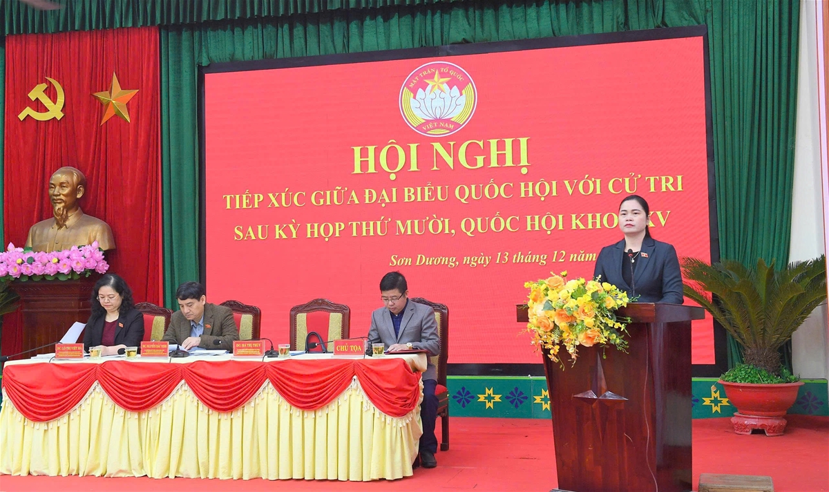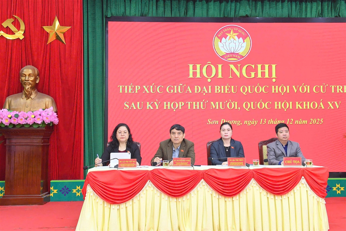 Tại Hội nghị, cử tri xã Sơn Dương bày tỏ sự vui mừng, phấn khởi và đồng tình cao trước thành công của Kỳ họp thứ 10, Quốc hội khóa XV. Đánh giá đây là kỳ họp có khối lượng công việc rất lớn, nhiều quyết sách quan trọng, thể hiện rõ tinh thần đổi mới, trách nhiệm và quyết tâm của Quốc hội trong việc tháo gỡ khó khăn, thúc đẩy phát triển kinh tế - xã hội đất nước. Cử tri tin tưởng các nghị quyết, luật và quyết định được Quốc hội thông qua sẽ sớm đi vào cuộc sống, tạo chuyển biến tích cực, thiết thực đối với đời sống Nhân dân. Cử tri cũng ghi nhận, đánh giá cao tinh thần trách nhiệm, sự sâu sát cơ sở và hiệu quả hoạt động của Đoàn ĐBQH tỉnh trong nhiệm kỳ Quốc hội khóa XV. Các ĐBQH của tỉnh đã chủ động nắm bắt tâm tư, nguyện vọng của cử tri; tích cực tham gia thảo luận, đóng góp nhiều ý kiến xác đáng tại nghị trường; kịp thời kiến nghị tháo gỡ những khó khăn, vướng mắc phát sinh từ thực tiễn địa phương, nhất là trong lĩnh vực đầu tư hạ tầng, an sinh xã hội và chính sách dân tộc…