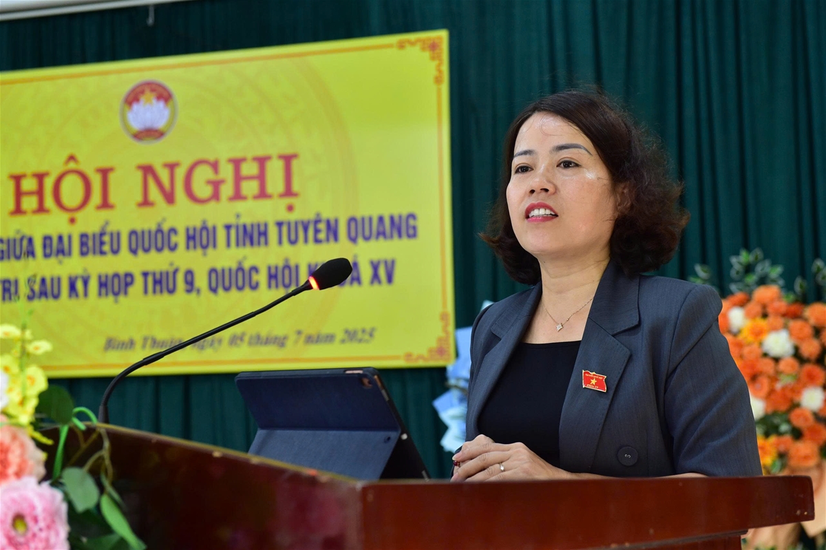 Phó Trưởng đoàn đại biểu Quốc hội tỉnh Ma Thị Thúy cũng thông tin về kết quả hoạt động của Đoàn đại biểu Quốc hội tỉnh Tuyên Quang sau hợp nhất gồm 11 đại biểu Quốc hội (có Trưởng đoàn và Phó trưởng Đoàn hoạt động chuyên trách, đoàn có 05 đại biểu Quốc hội ở Trung ương, trong đó có 2 đại biểu là Ủy viên Trung ương Đảng; các đại biểu công tác ở các cơ quan của Quốc hội có 04 đồng chí; 06 đại biểu Quốc hội tại địa phương). Với tinh thần trách nhiệm cao, các đại biểu Quốc hội đã tham gia đầy đủ các hoạt động tại kỳ họp, đã có 77 lượt đại biểu tham gia ý kiến góp ý, thảo luận tại Tổ và Hội trường tham gia vào các dự án Luật, Nghị quyết và tình hình kinh tế - xã hội, chất vấn và các vấn đề quan trọng, đã góp phần thành công chung của kỳ họp…