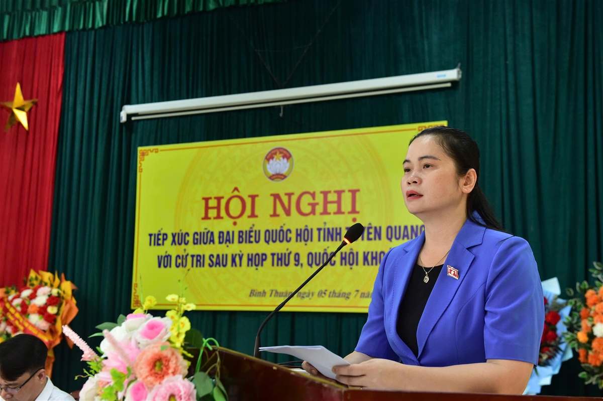 Tiếp xúc với cử tri Phường Bình Thuận, Phó trưởng Đoàn đại biểu Quốc hội Ma Thị Thúy đã báo cáo với cử tri kết quả Kỳ họp thứ 9, Quốc hội khóa XV, theo đó, sau 35 ngày làm việc nghiêm túc, dân chủ, trách nhiệm cao, với tinh thần đổi mới, chuẩn bị kỹ lưỡng, sắp xếp khoa học, tập trung cao độ, Kỳ họp thứ 9, Quốc hội khóa 15 đã hoàn thành toàn bộ nội dung, chương trình đề ra.