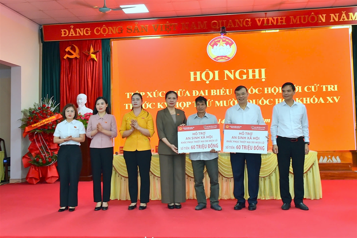 Nhân dịp này, Đoàn ĐBQH tỉnh phối hợp với Ngân hàng Nông nghiệp và Phát triển Nông thôn chi nhánh Tuyên Quang đã trao tặng 120 triệu đồng hỗ trợ các hộ dân bị thiệt hại do thiên tai trên địa bàn xã./.