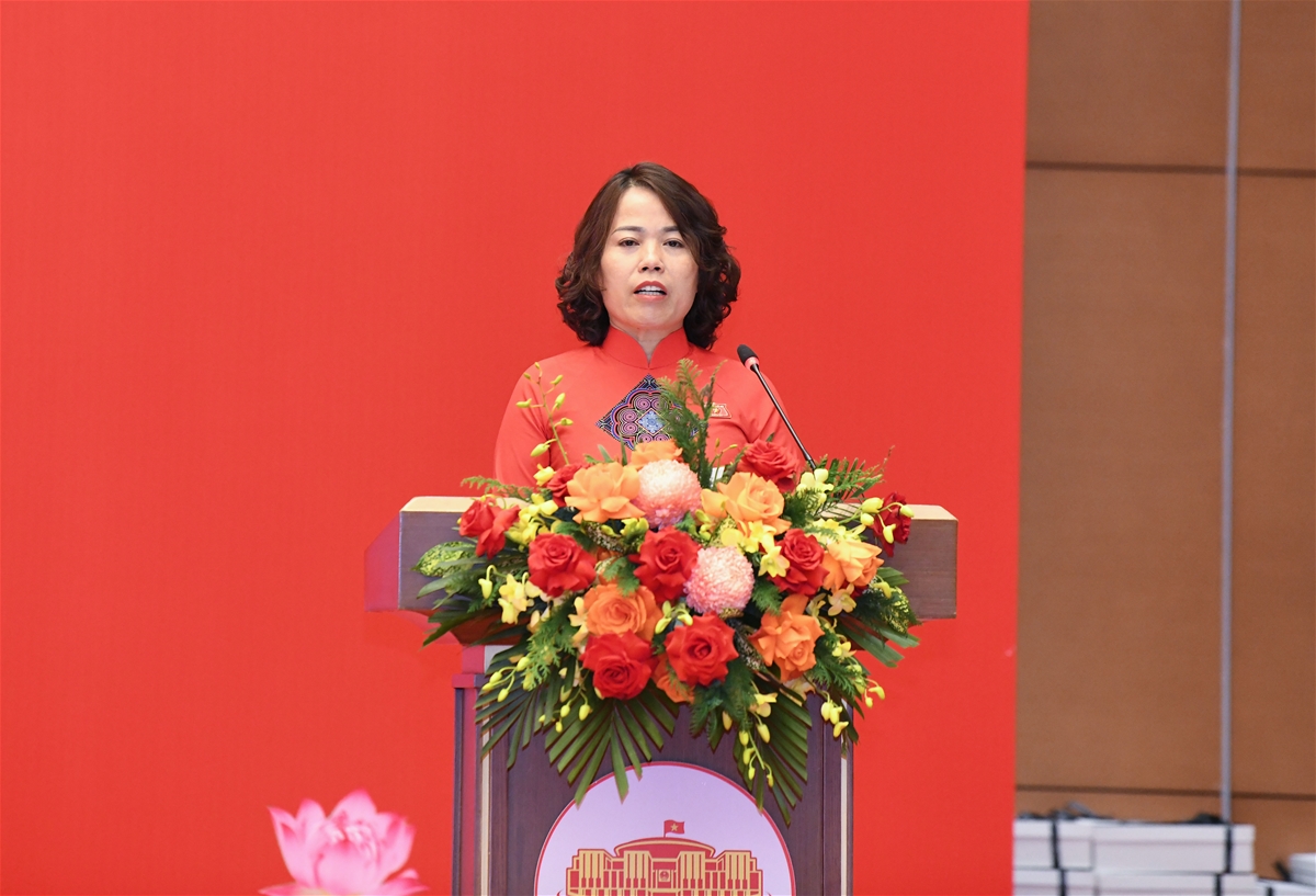 Đồng chí Lý Thị Lan, Uỷ viên BTV Tỉnh uỷ, Trưởng Đoàn ĐBQH hoạt động chuyên trách tỉnh Tuyên Quang, đại diện Thường trực Nhóm đại biểu Quốc hội chuyên trách địa phương phát biểu