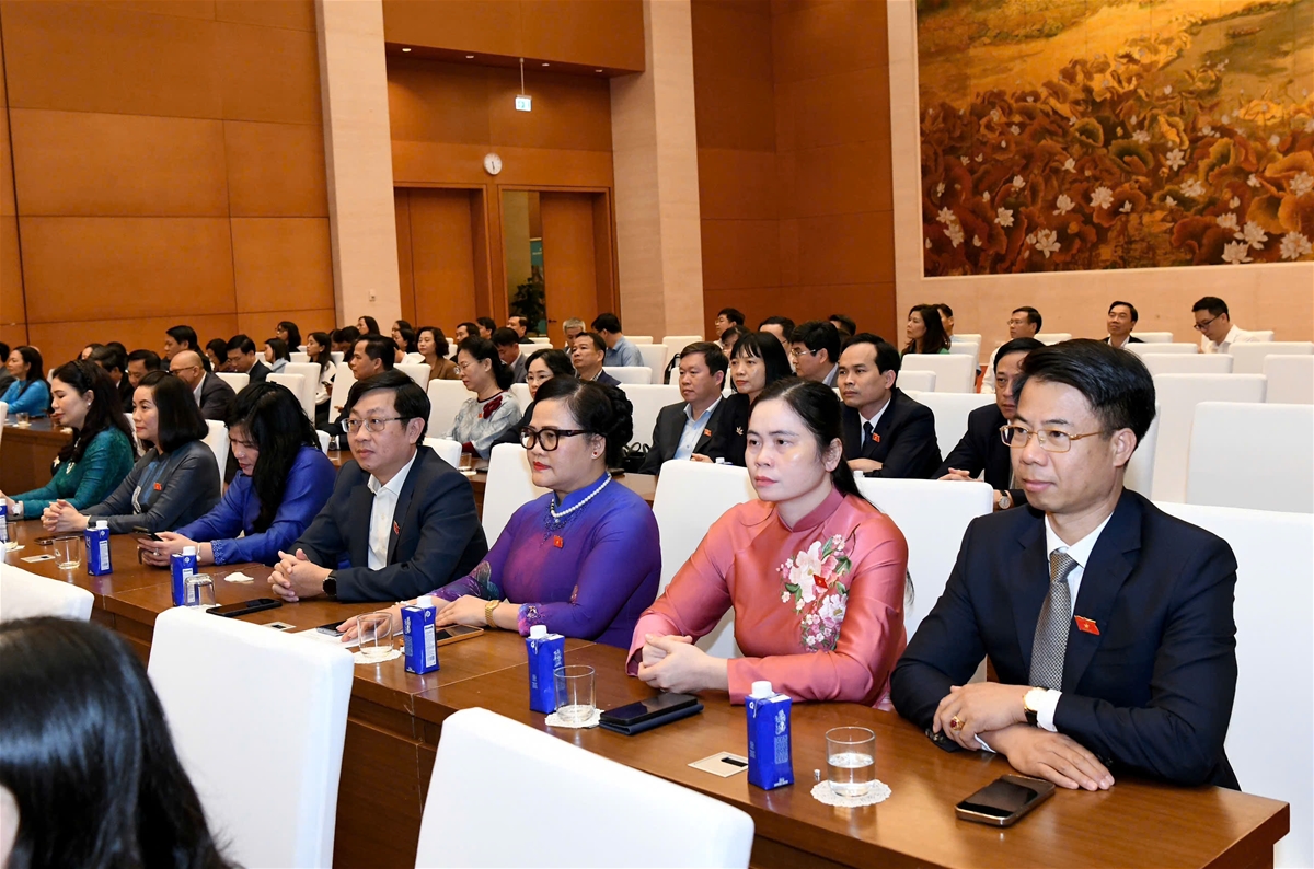 Chủ tịch Quốc hội Trần Thanh Mẫn; Phó Chủ tịch Thường trực Quốc hội Đỗ Văn Chiến và các Phó Chủ tịch Quốc hội Nguyễn Đức Hải; Phó Chủ tịch Quốc hội Nguyễn Thị Thanh; Phó Chủ tịch Quốc hội Vũ Hồng Thanh; Phó Chủ tịch Quốc hội Lê Minh Hoan với các đại biểu Quốc hội chuyên trách địa phương