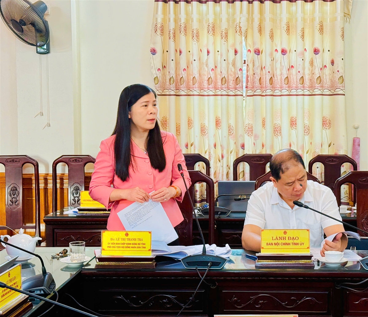 Đồng chí Lê Thị Thanh Trà, Uỷ viên Ban chấp hành Đảng bộ tỉnh, Phó Chủ tịch HĐND tỉnh tham gia ý kiến.