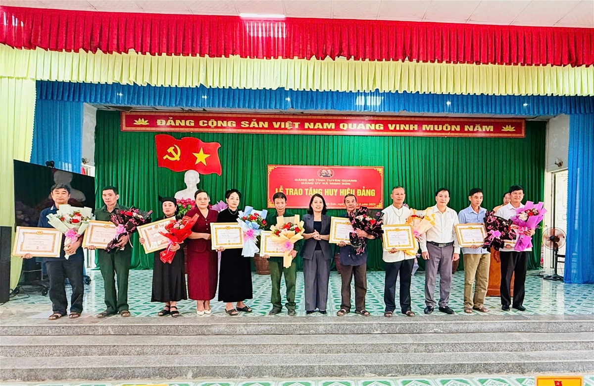 Thay mặt Ban Thường vụ Tỉnh ủy, đồng chí Lý Thị Lan, Ủy viên Ban Thường vụ Tỉnh ủy, Trưởng Đoàn đại biểu Quốc hội hoạt động chuyên trách khóa XV tỉnh Tuyên Quang đã trao Huy hiệu Đảng cho các đảng viên được vinh dự nhận trong đợt này. Đồng chí gửi lời chúc mừng đồng thời bày tỏ sự tri ân sâu sắc trước những cống hiến bền bỉ, quan trọng của các đồng chí đảng viên đối với sự nghiệp cách mạng và sự phát triển của quê hương, đất nước. Đồng chí nhấn mạnh, Huy hiệu Đảng là phần thưởng cao quý, không chỉ ghi nhận công lao, thành tích của mỗi đồng chí mà còn là minh chứng sinh động cho sự gắn bó, trung thành tuyệt đối với lý tưởng của Đảng.