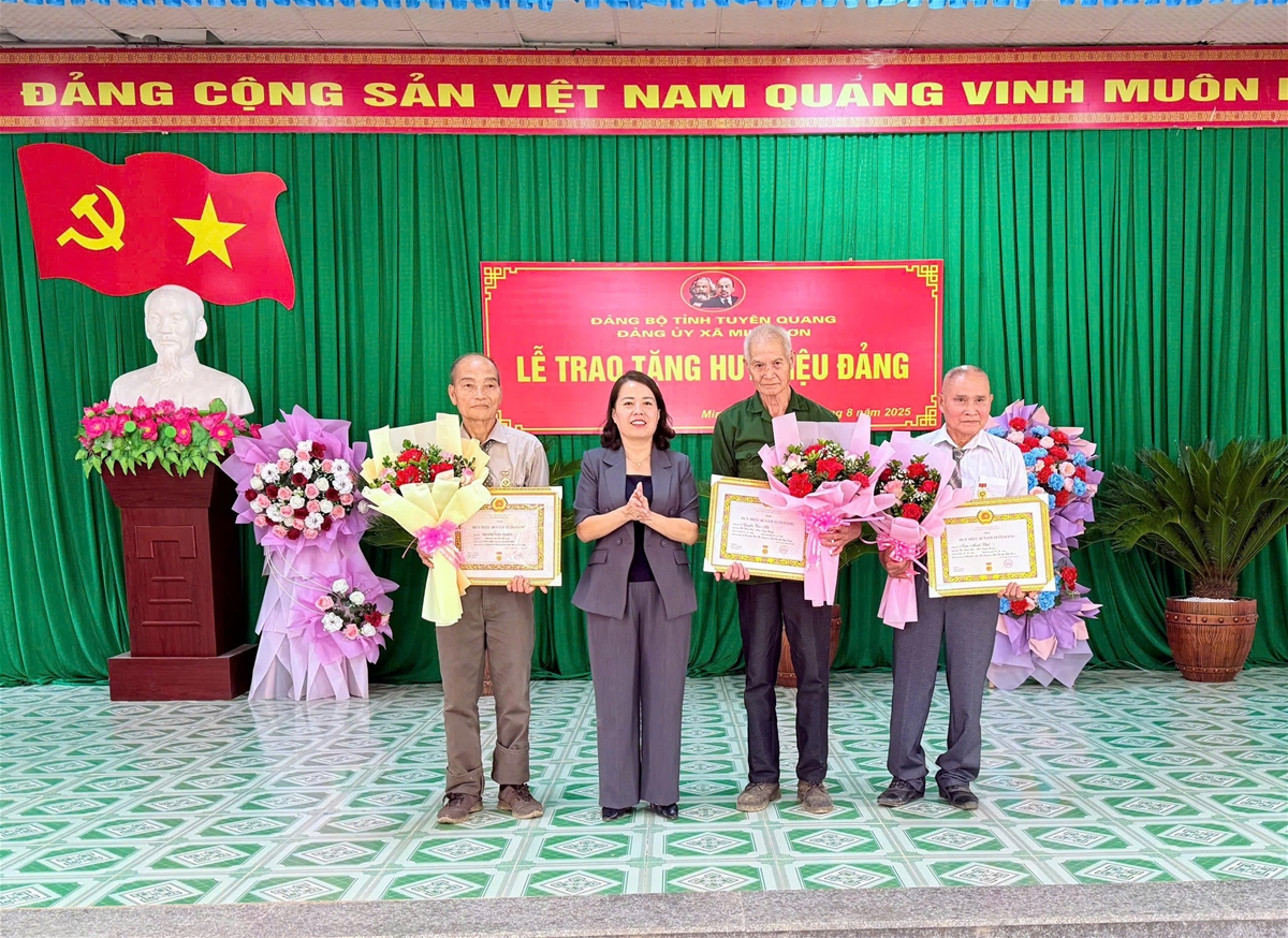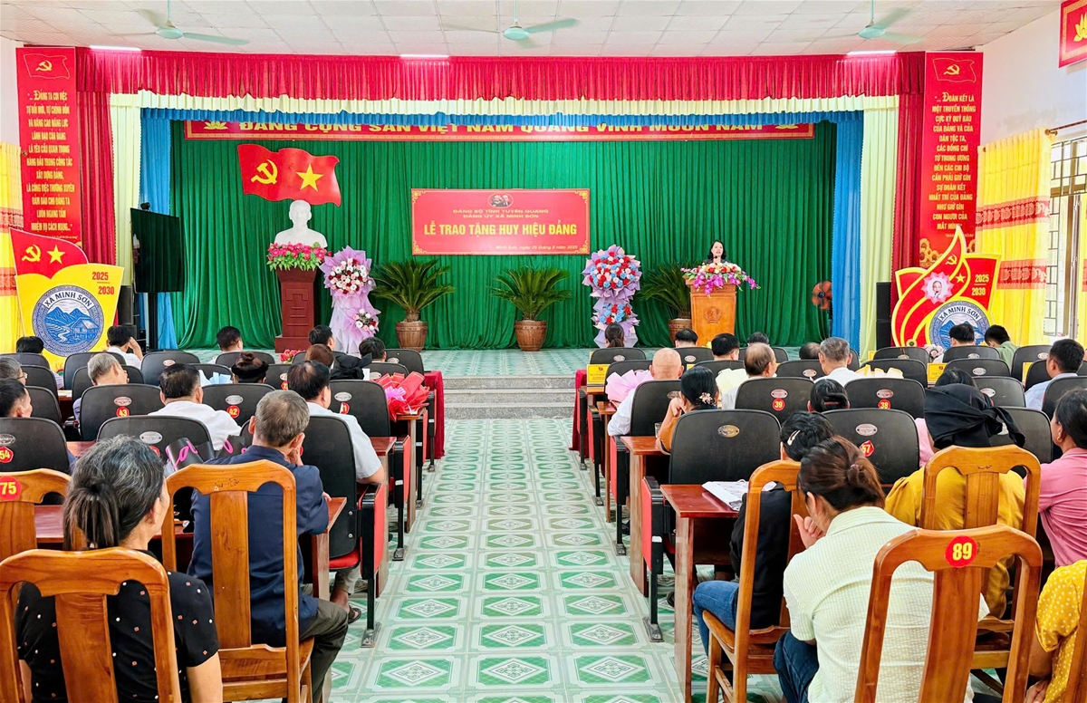 Theo Quyết định số 350-QĐ/TU ngày 13/8/2025 của Ban Thường vụ Tỉnh ủy, nhân dịp kỷ niệm 80 năm Cách mạng Tháng Tám và Quốc khánh 02/9, toàn tỉnh Tuyên Quang có 1.280 đảng viên được tặng và truy tặng Huy hiệu Đảng. Trong đó Đảng bộ xã Minh Sơn có nhiều đảng viên được trao tặng Huy hiệu 30 năm, 40 năm và 45 năm tuổi Đảng. Đây là sự ghi nhận, trân trọng của Đảng đối với quá trình rèn luyện, cống hiến không ngừng của các thế hệ đảng viên, đồng thời là niềm tự hào to lớn của Đảng bộ, chính quyền và nhân dân xã Minh Sơn.