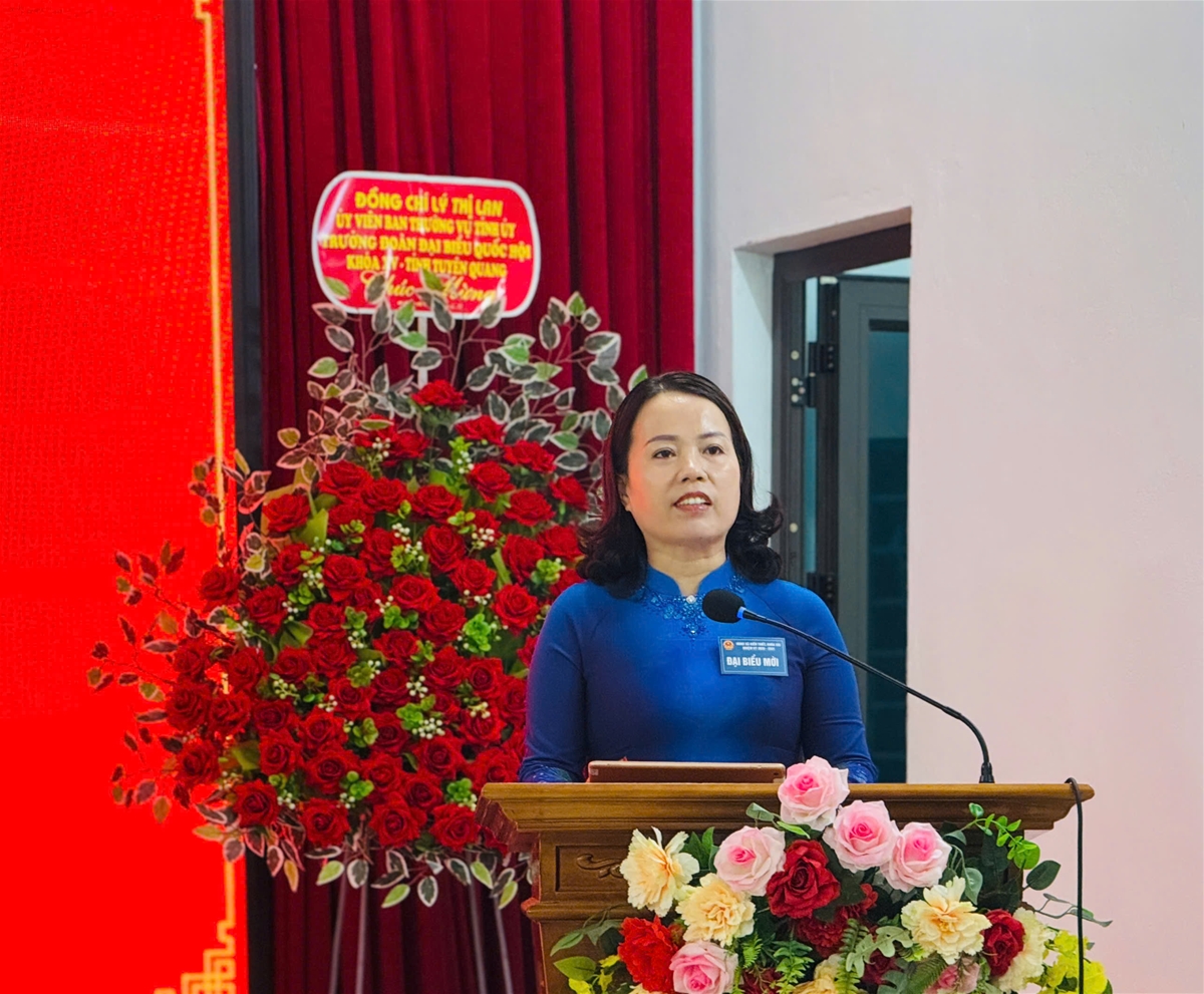 Đồng chí Lý Thị Lan, Uỷ viên BTV Tỉnh uỷ, Trưởng Đoàn ĐBQH hoạt động chuyên trách khoá XV tỉnh phát biểu chỉ đạo Kỳ họp.