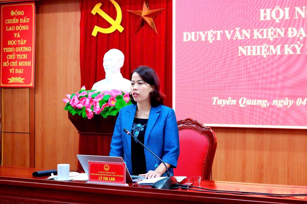 Đồng chí Lý Thị Lan, Ủy viên BTV Tỉnh ủy, Trưởng Đoàn ĐBQH hoạt động chuyên trách khóa XV tỉnh phát biểu tại buổi làm việc.