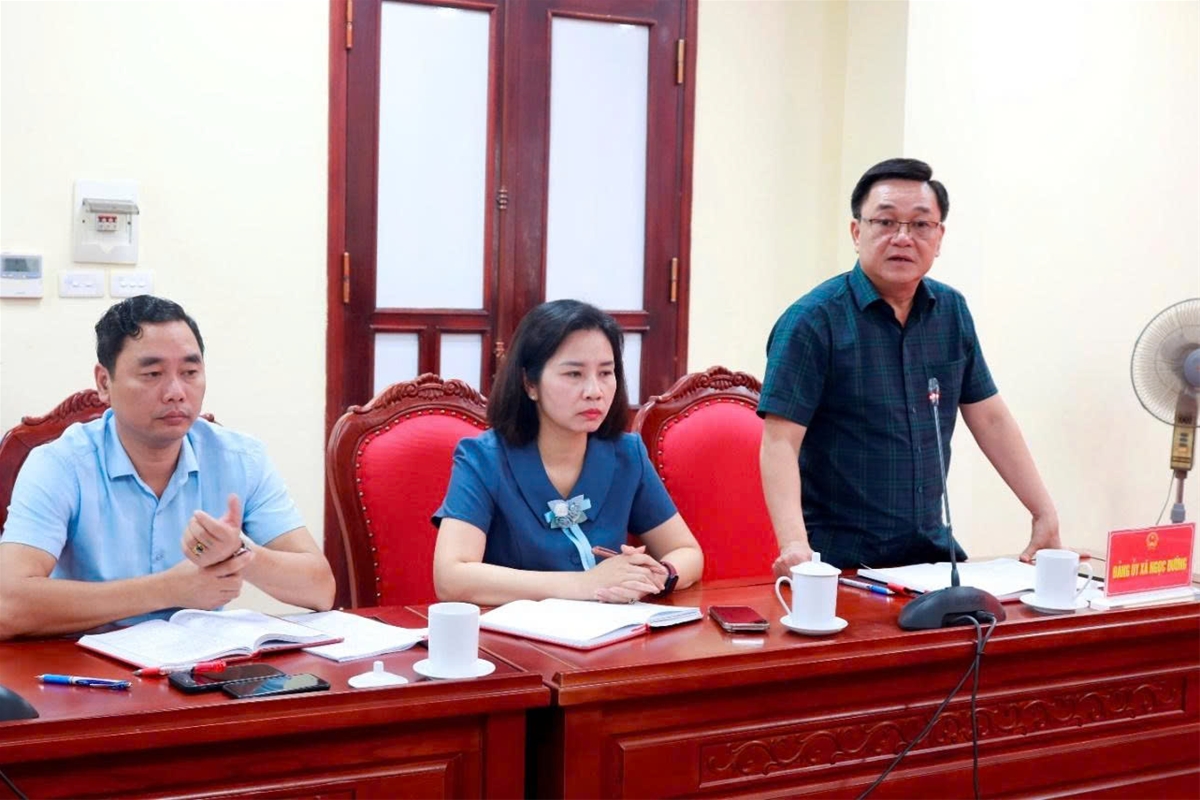Lãnh đạo xã Ngọc Đường báo cáo tại buổi làm việc.