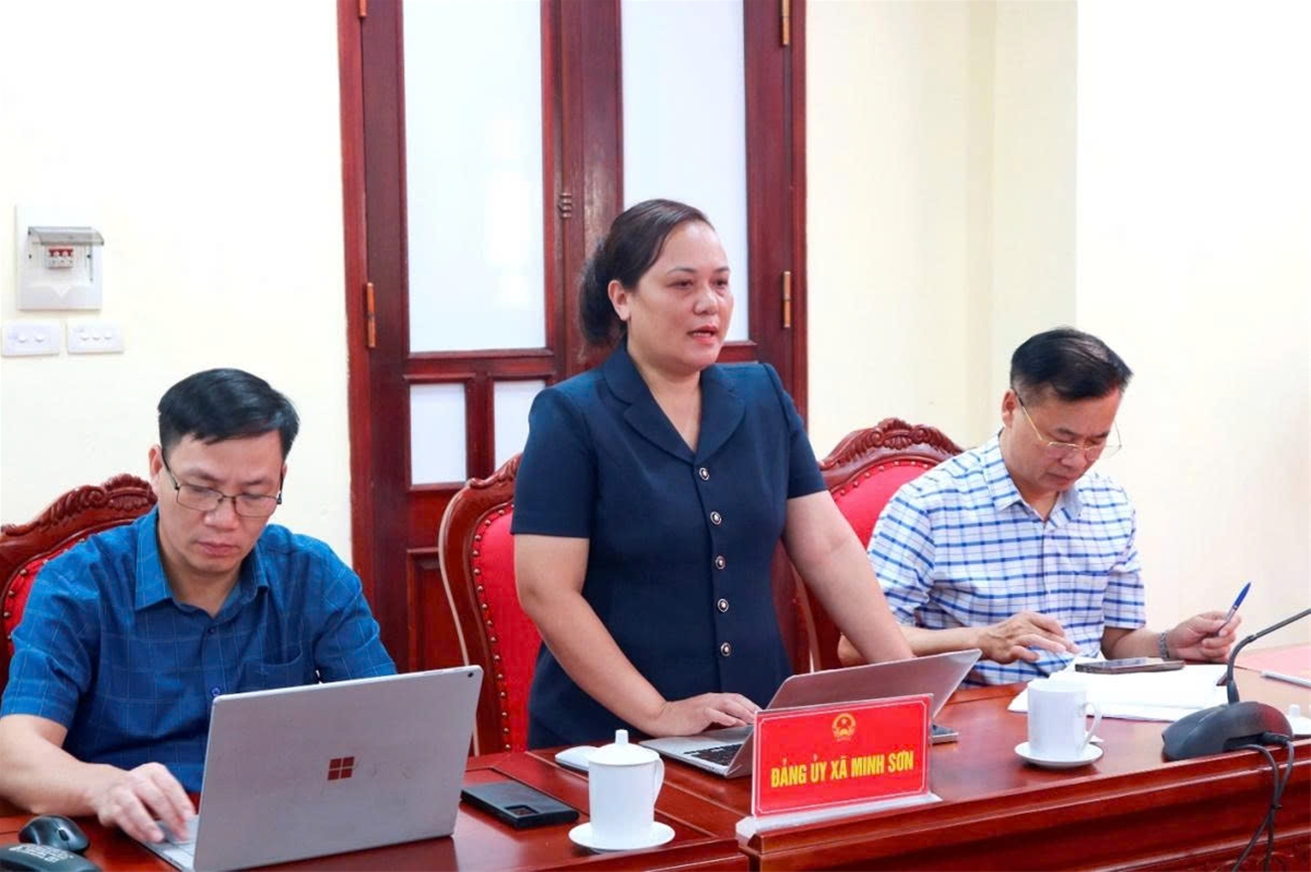 Lãnh đạo xã Minh Sơn và xã Thuận Hòa báo cáo tại buổi làm việc.