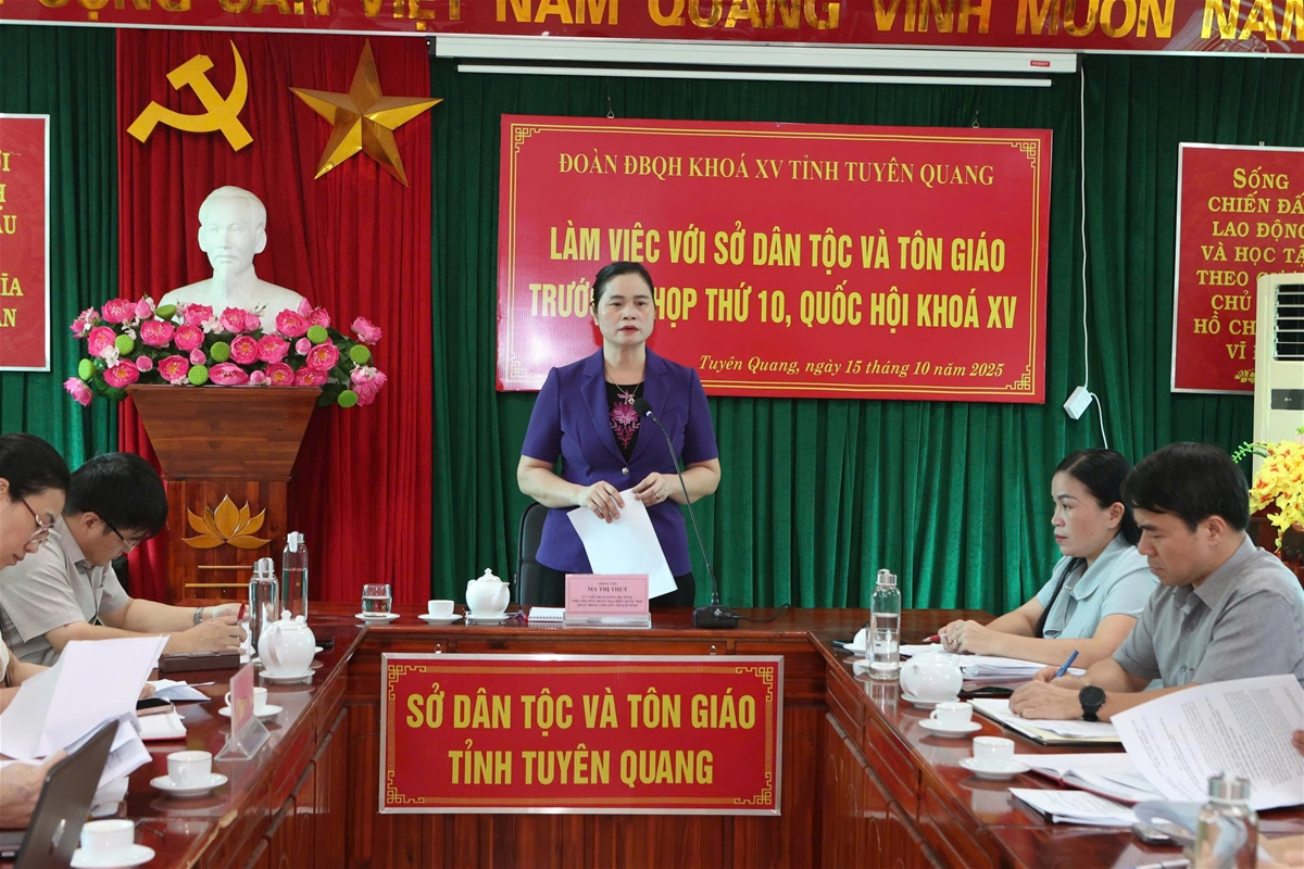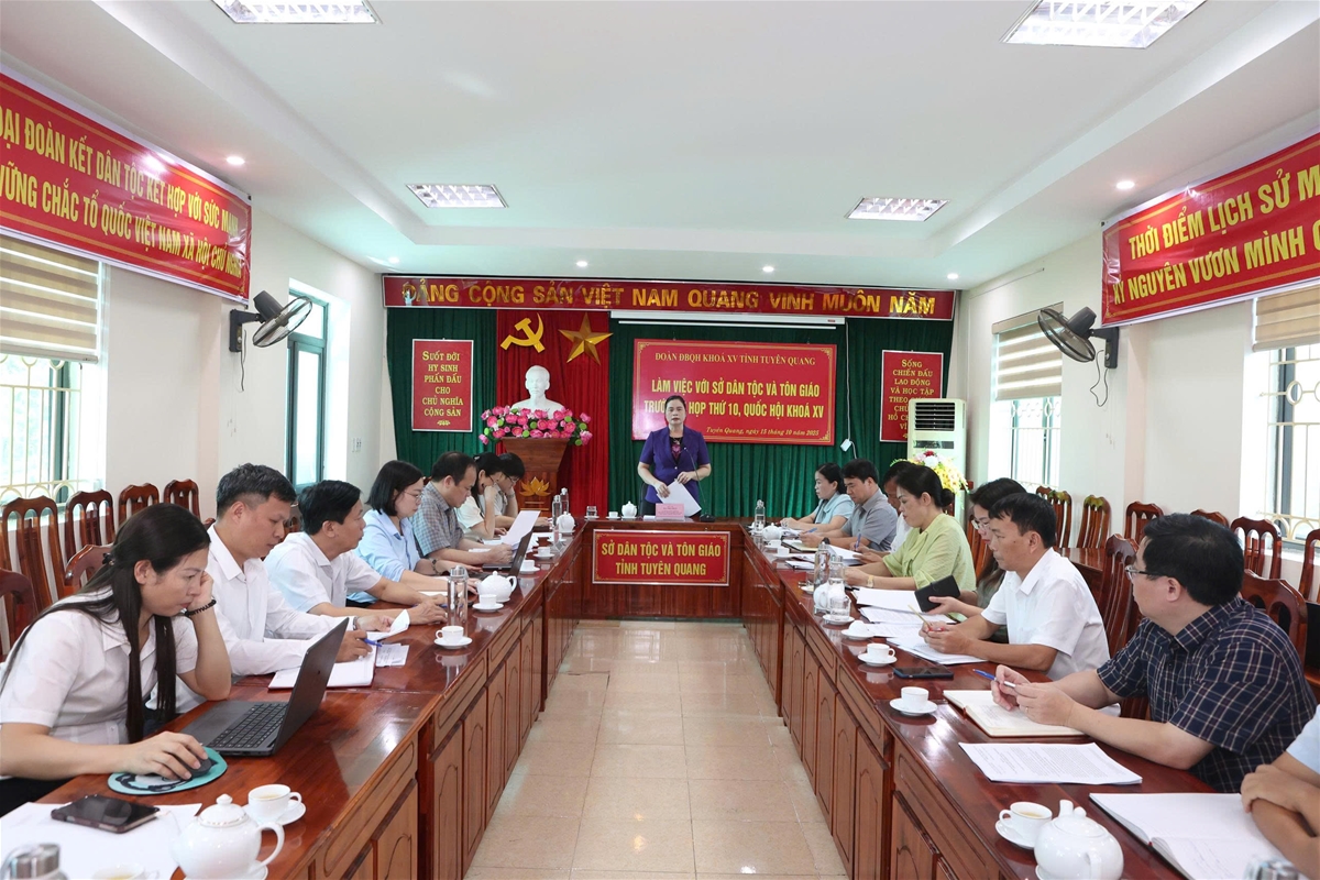 Lãnh đạo Sở Dân tộc và Tôn giáo tỉnh báo cáo kết quả thực hiện một số nhiệm vụ công tác dân tộc, chính sách dân tộc trên địa bàn tỉnh trong thời gian qua. Quá trình triển khai, nhiều dự án thành phần đạt kết quả tích cực. Tuy vậy, Sở cũng thẳng thắn chỉ ra một số tồn tại, khó khăn. Sở Dân tộc và Tôn giáo tỉnh kiến nghị với Đoàn ĐBQH đề nghị Quốc hội, Chính phủ cho phép các địa phương được kéo dài thực hiện giải ngân vốn Chương trình mục tiêu đến hết năm 2026; xem xét sửa đổi, bổ sung hoặc thay thế Nghị định số 27/2022/NĐ-CP ngày 19/4/2022 Quy định cơ chế quản lý, tổ chức thực hiện các chương trình mục tiêu quốc gia; Nghị định số 38/2023/NĐ-CP ngày 24/6/2023 của Chính phủ về sửa đổi, bổ sung một số điều của Nghị định số 27/2022/NĐ-CP ngày 19/4/2022 của Chính phủ quy định cơ chế quản lý, tổ chức thực hiện các chương trình mục tiêu quốc gia cho phù hợp với mô hình chính quyền địa phương hai cấp; sớm nghiên cứu, ban hành nội dung định hướng Chương trình mục tiêu quốc gia phát triển kinh tế - xã hội vùng đồng bào dân tộc thiểu số và miền núi, giai đoạn 2026-2030 để các địa phương kịp thời triển khai thực hiện; có chính sách thu hút, đãi ngộ đặc thù đối với công chức làm việc ở vùng khó khăn, biên giới, miền núi, để khuyến khích gắn bó lâu dài...