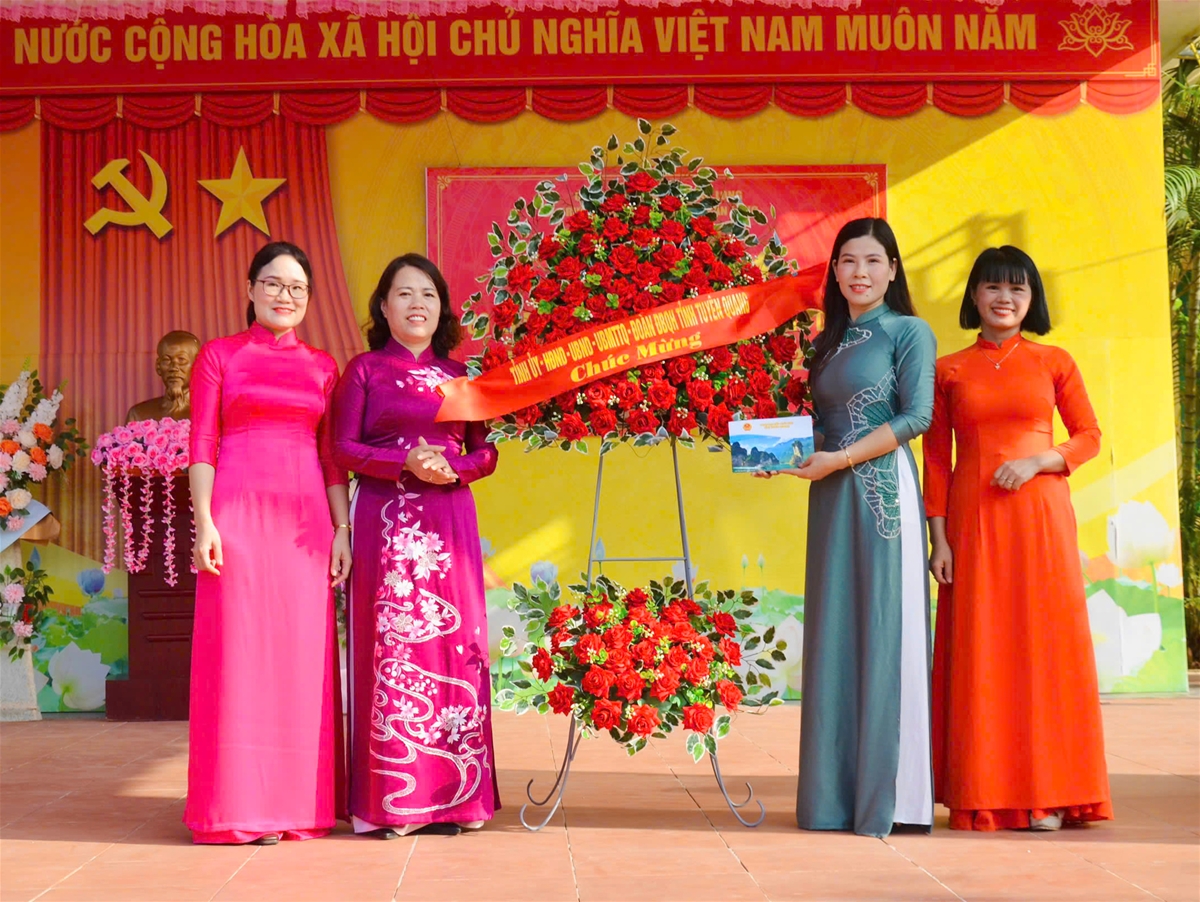 Lãnh đạo Đoàn ĐBQH khoá XV tỉnh Tuyên Quang tặng hoa chúc mừng các trường.