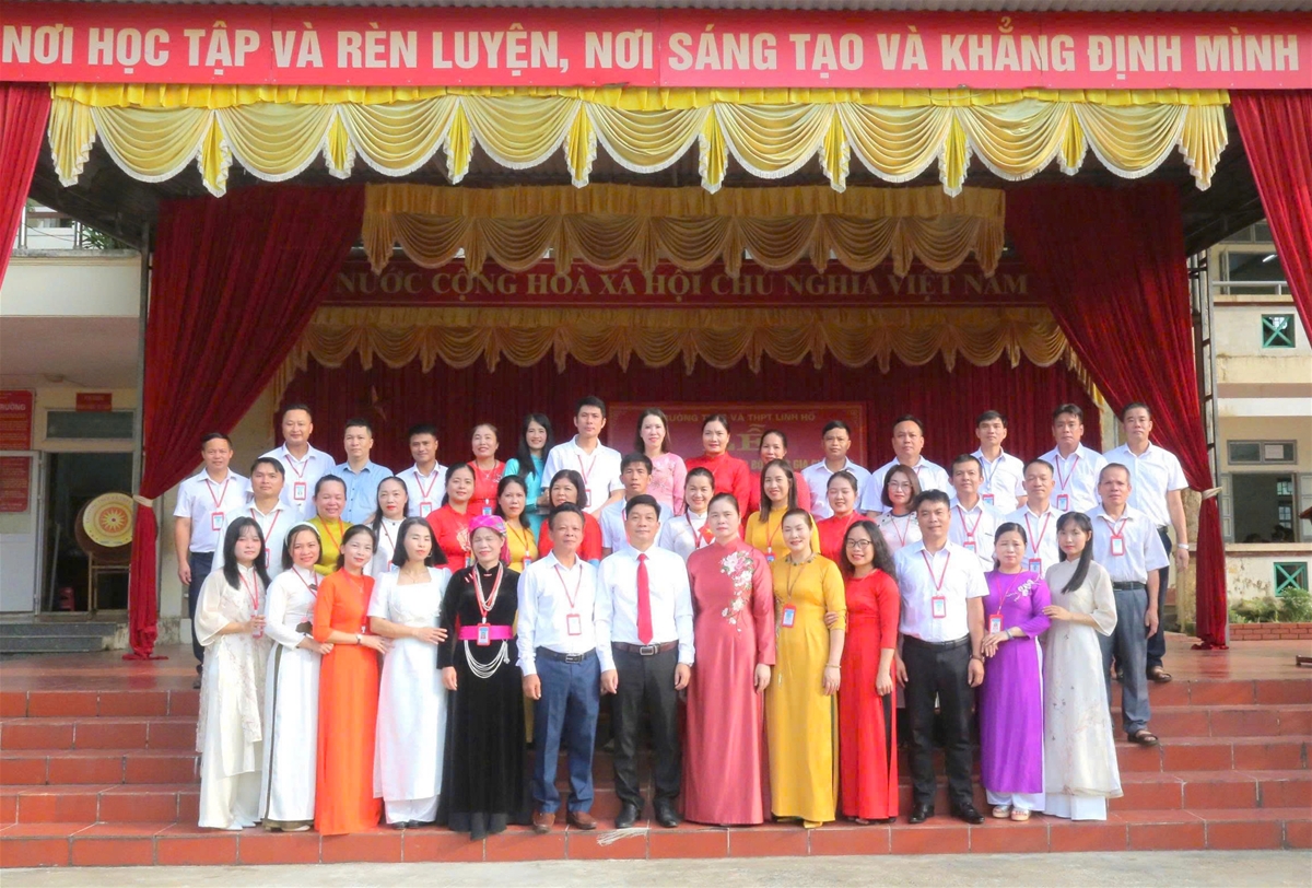 Đồng chí Ma Thị Thúy, Ủy viên Ban Chấp hành Đảng bộ tỉnh, Phó Trưởng Đoàn đại biểu Quốc hội chuyên trách khóa XV tỉnh Tuyên Quang chụp cùng tập thể giáo viên, học sinh trường THCS&THPT Linh Hồ.