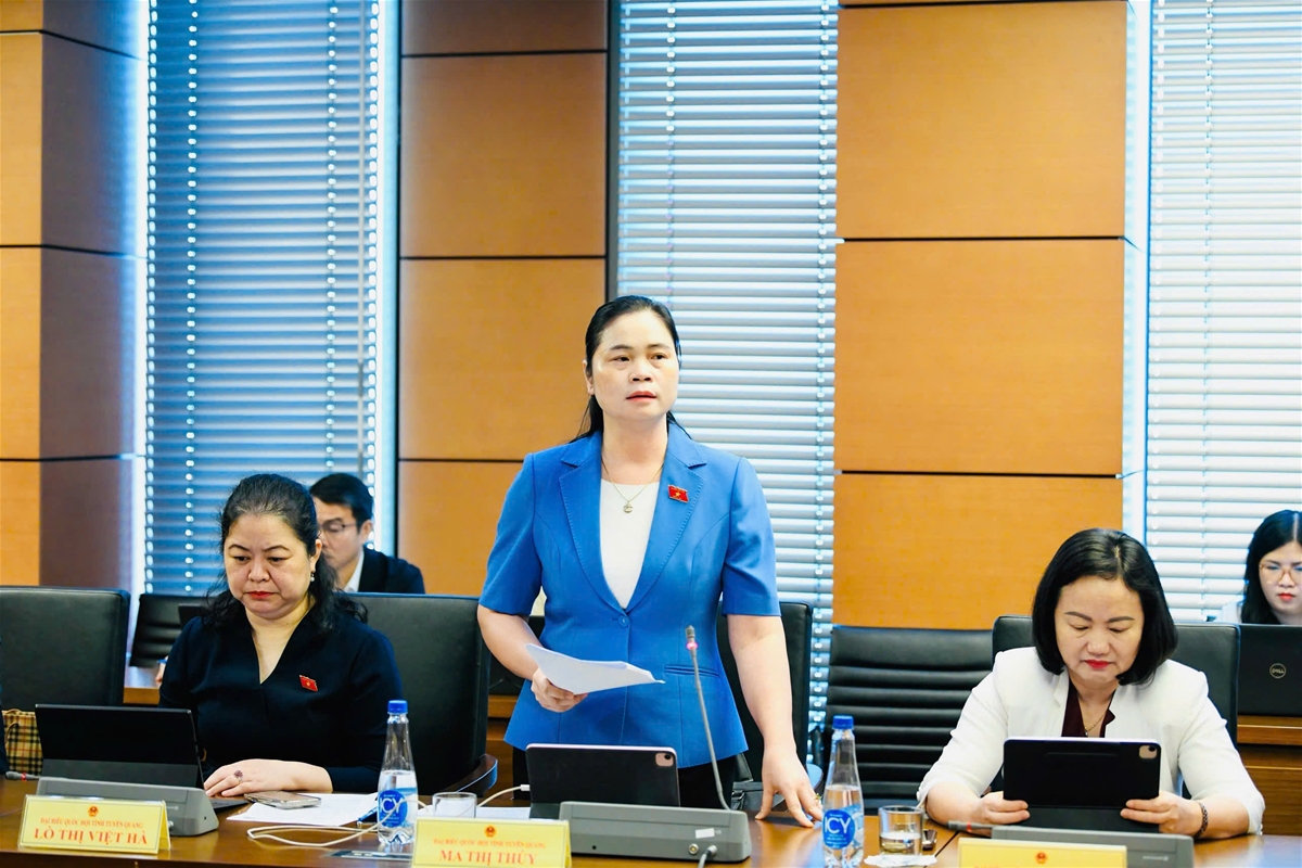 Đại biểu Ma Thị Thúy, Phó Trưởng đoàn ĐBQH chuyên trách tỉnh tham gia phát biểu