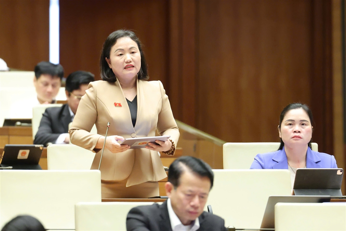 Phát biểu thảo luận, đồng chí Phạm Thúy Chinh, Phó Chủ nhiệm Ủy ban Kinh tế và Tài chính, đại biểu Quốc hội tỉnh đề nghị tiếp tục nghiên cứu các vấn đề: