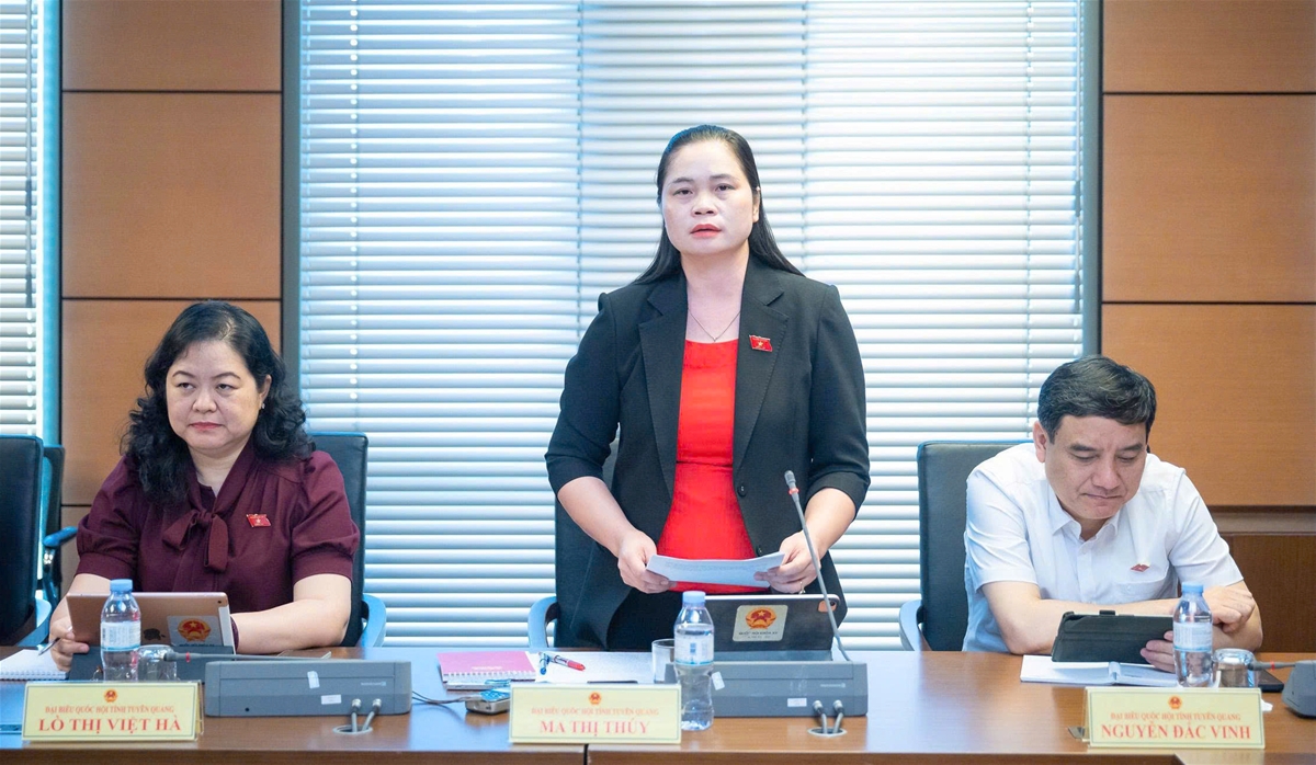 Phó Trưởng Đoàn đại biểu Quốc hội chuyên trách tỉnh Ma Thị Thúy phát biểu.
