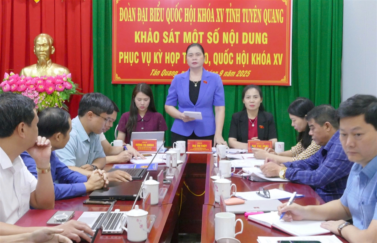 Phát biểu tại buổi làm việc, đồng chí Ma Thị Thúy, Phó Trưởng Đoàn đại biểu Quốc hội tỉnh, đánh giá cao tinh thần trách nhiệm, sự nỗ lực của cấp ủy, chính quyền và nhân dân xã Tân Quang trong việc khắc phục khó khăn, hoàn thành nhiệm vụ chính trị, phát triển kinh tế - xã hội tại địa phương. Đồng chí đề nghị xã chủ động giải quyết kịp thời những vướng mắc ngay từ cơ sở; đảm bảo quyền lợi của người dân thụ hưởng các Chương trình mục tiêu quốc gia; tiếp tục quan tâm tạo việc làm, nâng cao thu nhập cho người dân. Đối với những khó khăn, vướng mắc của địa phương, Đoàn ĐBQH tỉnh sẽ tổng hợp và chuyển đến các cơ quan hữu quan xem xét, giải quyết.
