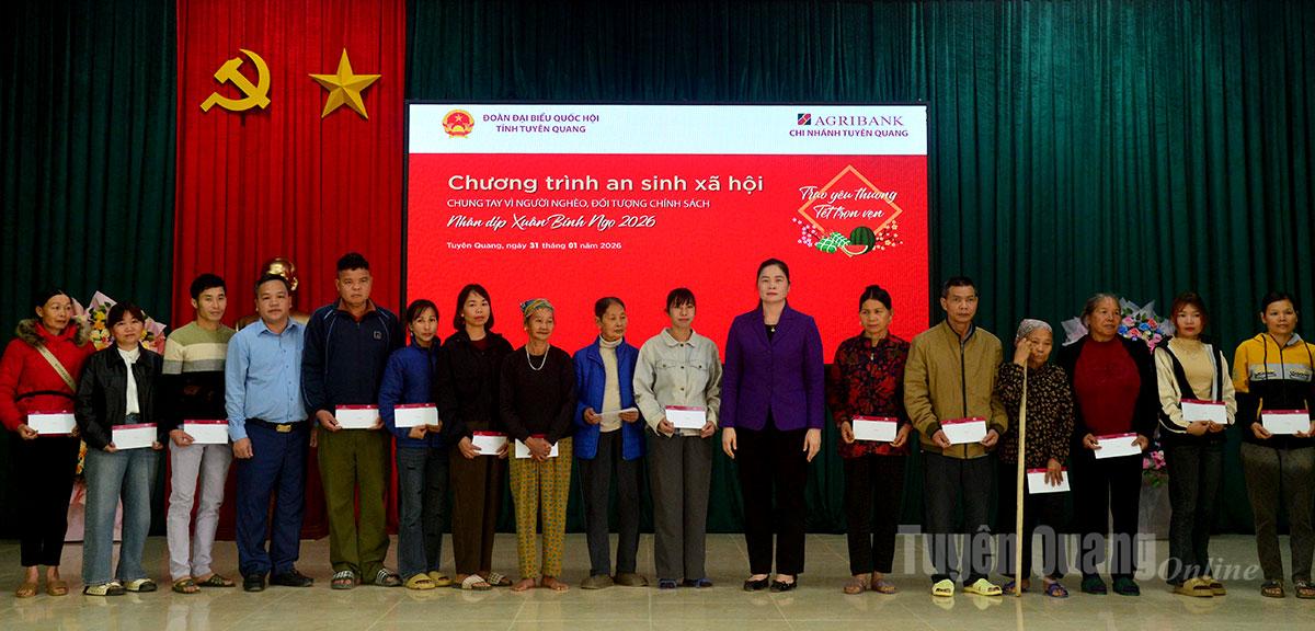 Tại chương trình, Phó Trưởng Đoàn ĐBQH hoạt động chuyên trách tỉnh Ma Thị Thúy và đại diện Chi nhánh Agribank tỉnh Tuyên Quang đã trao 50 suất quà cho các hộ nghèo, gia đình chính sách tại xã Hùng Đức và 40 suất quà tại xã Nhữ Khê. Mỗi suất quà trị giá 1 triệu đồng, tương đương với tổng số tiền 90 triệu đồng.
