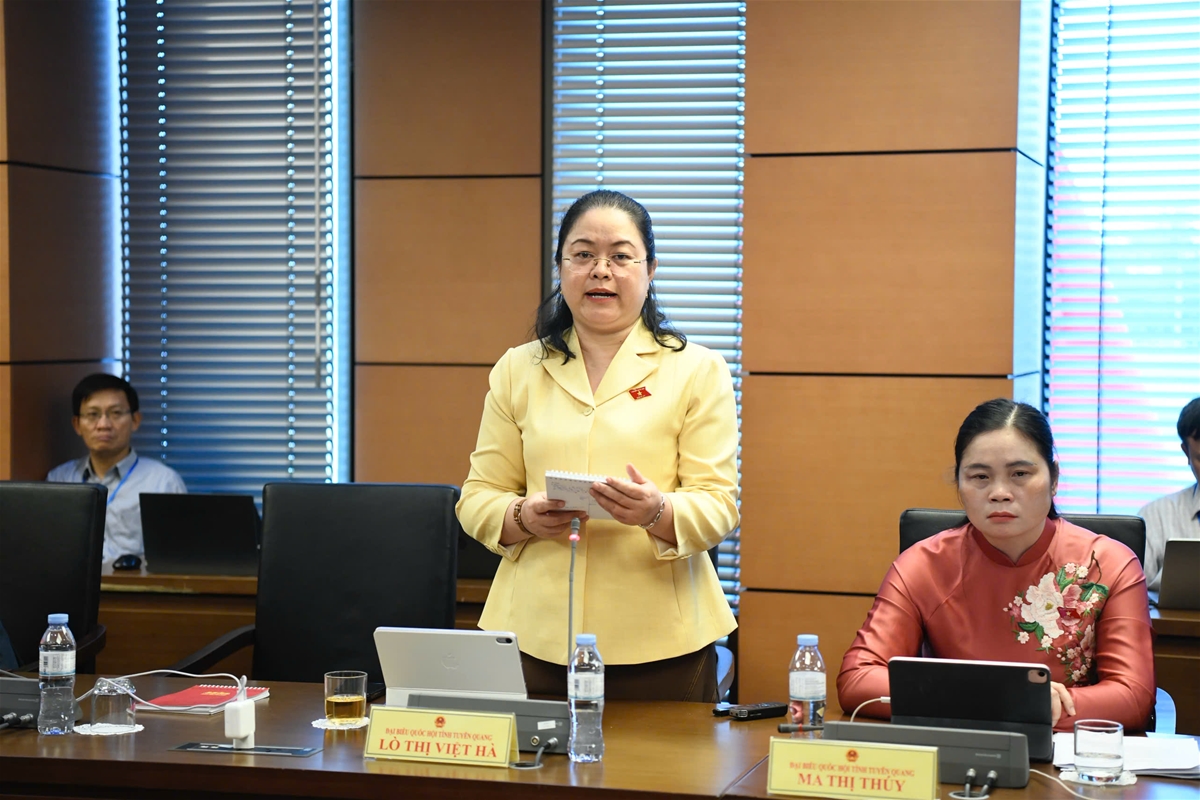 Tham gia thảo luận, đại biểu Lò Thị Việt Hà nhất trí cao với chủ trương đầu tư Dự án xây dựng đường bộ cao tốc Vinh - Thanh Thủy và việc sửa đổi, bổ sung các nghị quyết về cơ chế đặc thù đối với thành phố Hồ Chí Minh và thành phố Đà Nẵng. Đại biểu cũng nhất trí cao với sự cần thiết, tên gọi, phạm vi điều chỉnh, mục tiêu và việc hợp nhất 3 chương trình. Về chương trình vùng đồng bào dân tộc thiểu số là chương trình đặc thù, với trên 130 chính sách có ý nghĩa chiến lược, đặc biệt quan trọng trên phạm vi cả nước, có ý nghĩa trước mắt và lâu dài. Tuy nhiên cần đánh giá khách quan về kết quả và hạn chế của quá trình thực hiện. Đại biểu cho rằng cần rà soát một số chỉ tiêu trong dự thảo nghị quyết để sát với thực tế; các chính sách về y tế, giáo dục, văn hóa đảm bảo không trùng với các chương trình về y tế, giáo dục, văn hoá đang trình tại kỳ họp thứ 10, tránh chồng chéo, lãng phí, dàn trải nguồn lực; sau khi sắp xếp chính quyền địa phương hai cấp, địa bàn tỉnh, xã có nhiều thay đổi, Chính phủ cần sớm rà soát các xã khó khăn và đặc biệt khó khăn để công bố triển khai phù hợp với thực tiễn. Về đối ứng vốn, đại biểu cho rằng các địa phương khó khăn về ngân sách rất khó để thực hiện đối ứng, Chính phủ cần nghiên cứu quy định về tỷ lệ đối ứng phù hợp với những địa phương còn khó khăn. Nhất trí về đề xuất chuyển nguồn, tuy nhiên đại biểu cũng rất băn khoăn vì chuyển nguồn diễn ra nhiều năm, đồng thời đề nghị Chính phủ có giải pháp giải ngân hiệu quả năm 2026.