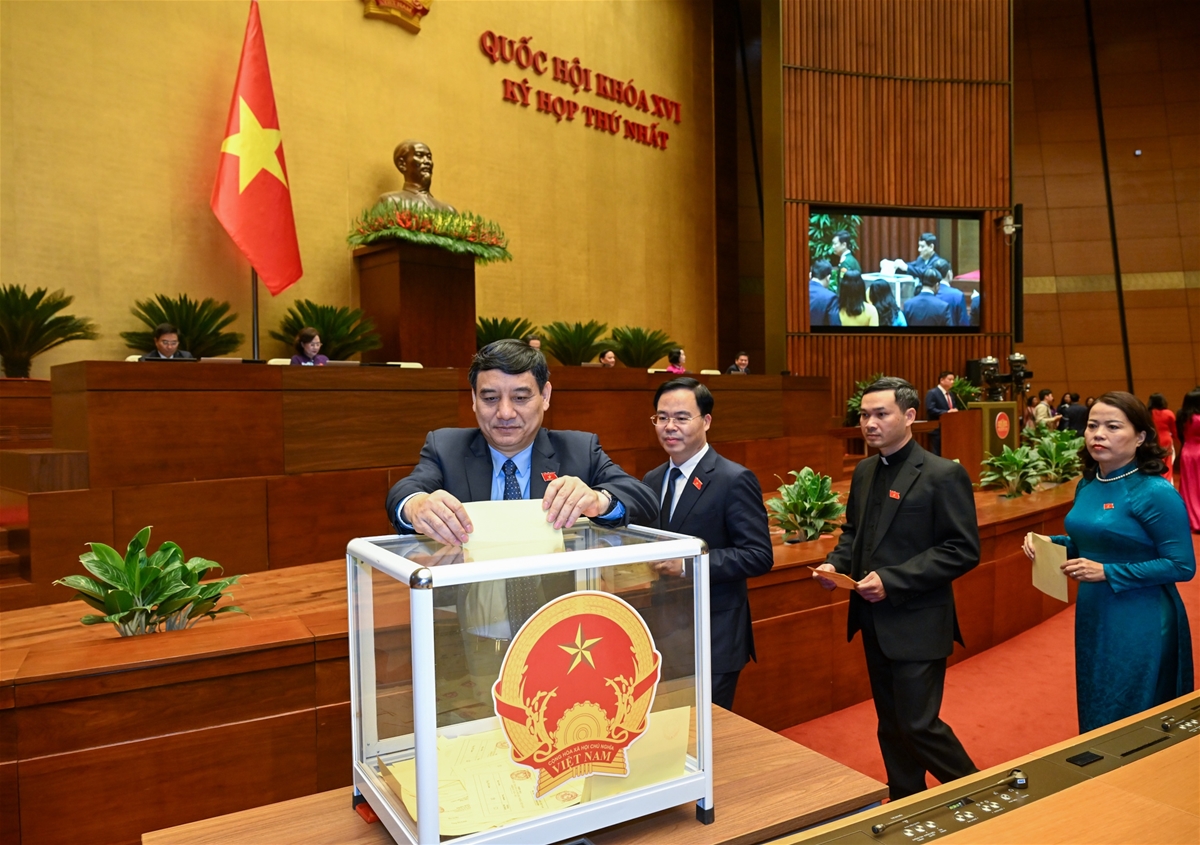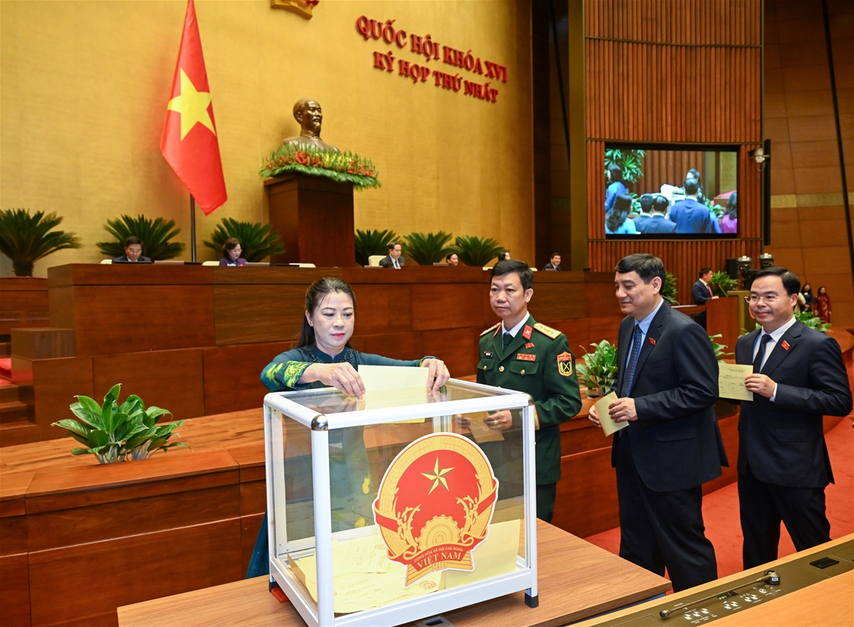 Quốc hội họp phiên toàn thể tại Hội trường thực hiện quy trình thông qua Nghị quyết bầu Chủ tịch nước. Với 495/495 đại biểu tham gia biểu quyết tán thành (bằng 100% đại biểu Quốc hội có mặt và bằng 99% tổng số đại biểu Quốc hội), Quốc hội đã thông qua Nghị quyết bầu đồng chí Tô Lâm, Tổng Bí thư Ban Chấp hành Trung ương Đảng Cộng sản Việt Nam, đại biểu Quốc hội khóa XVI giữ chức Chủ tịch nước Cộng hòa xã hội chủ nghĩa Việt Nam nhiệm kỳ 2026-2031. Sau khi được bầu, tân Chủ tịch nước đã tuyên thệ nhậm chức theo quy định.