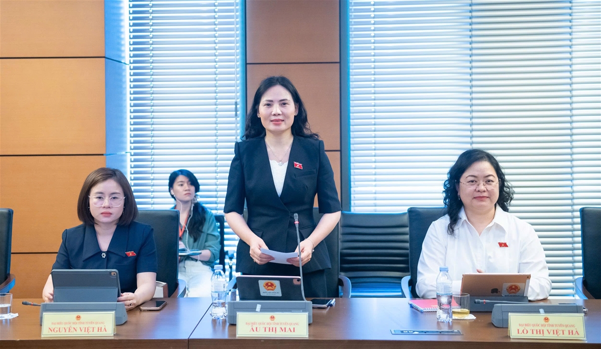 Đồng chí Âu Thị Mai, Ủy viên Ban Chấp hành Đảng bộ tỉnh, Giám đốc Sở Văn hóa, Thể thao và Du lịch, đại biểu Quốc hội tỉnh thống nhất với Tờ trình của Chính phủ, Báo cáo thẩm tra của Ủy ban Pháp luật và Tư pháp và dự thảo Nghị quyết của Quốc hội về sắp xếp đơn vị hành chính cấp tỉnh năm 2025, tuy nhiên đối với hiệu lực thi hành, đại biểu đề nghị cần bổ sung quy định điều khoản chuyển tiếp để các địa phương có thời gian sắp xếp để đảm bảo các điều kiện hoạt động.