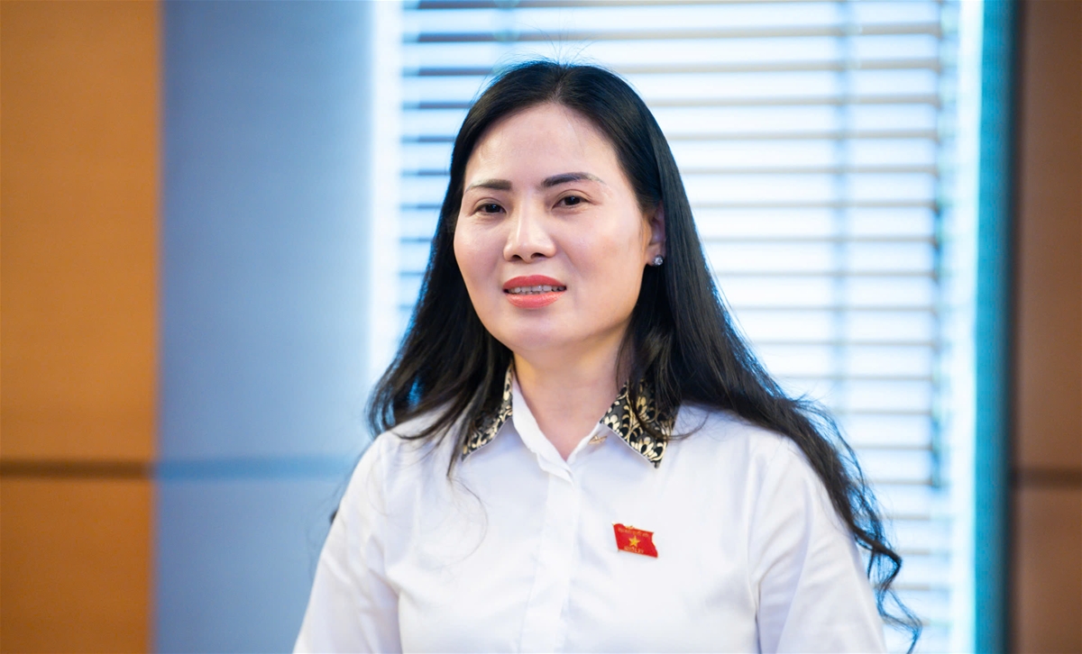 Đồng chí Âu Thị Mai, Giám đốc Sở Văn hóa, Thể thao và Du lịch, đại biểu Quốc hội tỉnh phát biểu.