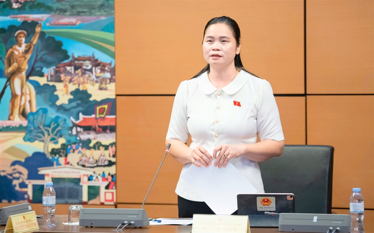 Đồng chí Ma Thị Thúy, Ủy viên Ban Chấp hành Đảng bộ tỉnh, Phó Trưởng Đoàn đại biểu Quốc hội chuyên trách tỉnh Tuyên Quang chủ trì thảo luận tại Tổ thảo luận số 17 gồm đại biểu Quốc hội các tỉnh: Quảng Ngãi, Nam Định, Cà Mau và Tuyên Quang.