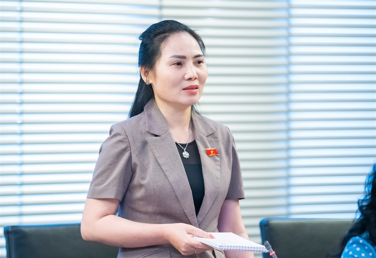 Đại biểu Lò Thị Việt Hà, Ủy viên là ĐBQH hoạt động chuyên trách tại Ủy ban Văn hóa và Xã hội phát biểu.