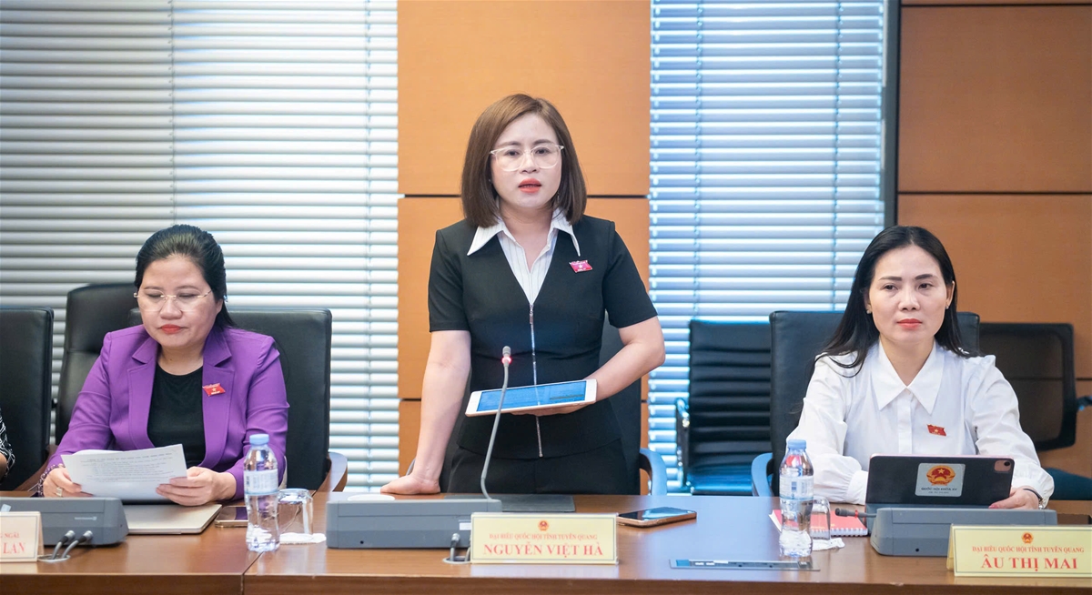 Đại biểu Nguyễn Việt Hà, Giám đốc Ngân hàng Nông nghiệp và Phát triển Nông thôn, Chi nhánh Tuyên Quang phát biểu thảo luận.
