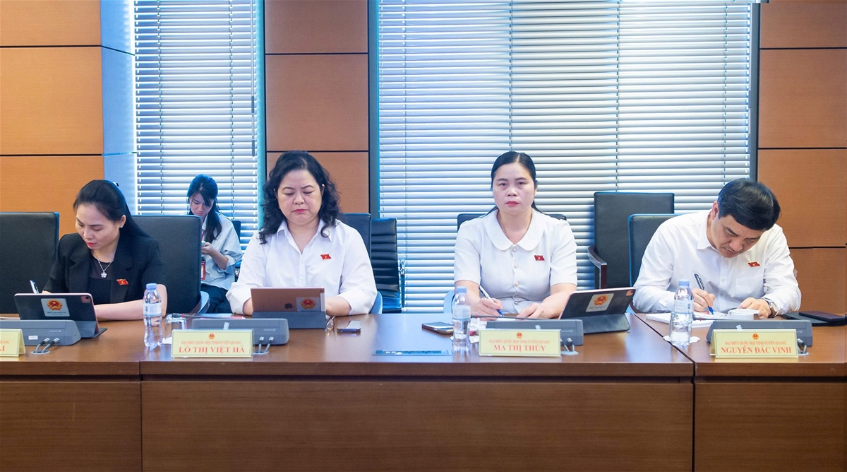 Đồng chí Trần Quang Phương, Ủy viên Trung ương Đảng, Phó Chủ tịch Quốc hội và đồng chí Hà Thị Nga, Ủy viên Ban Chấp hành Trung ương, Bí thư Tỉnh ủy, Trưởng đoàn đại biểu Quốc hội tỉnh chủ trì phiên thảo luận Tổ gồm đại biểu các Đoàn: Tuyên Quang, Nam Định, Quảng Ngãi, Cà Mau.