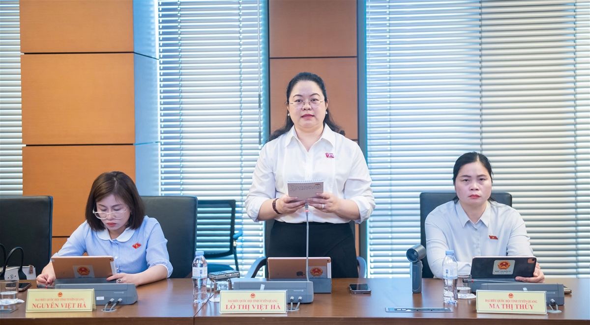 Đại biểu Lò Thị Việt Hà, Ủy viên là đại biểu hoạt động chuyên trách Ủy ban Văn hóa và Xã hội của Quốc hội, đại biểu Quốc hội tỉnh phát biểu thảo luận.
