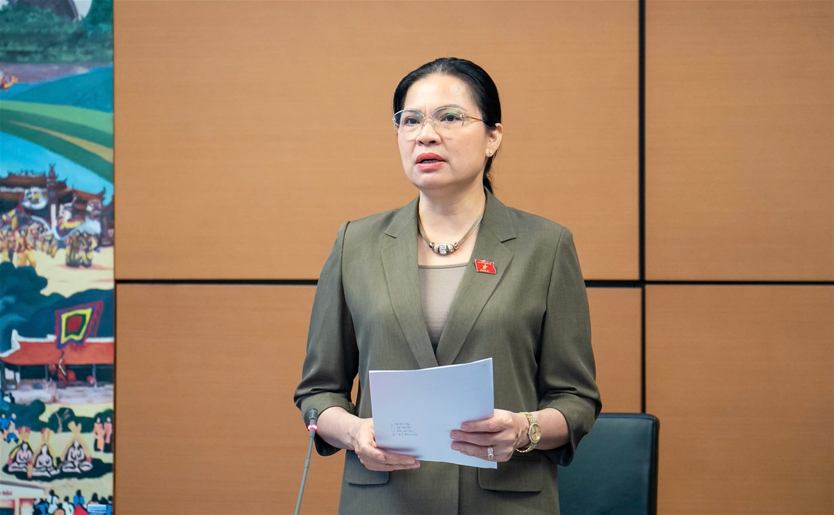 Đại biểu Ma Thị Thúy, Phó Trưởng đoàn ĐBQH tỉnh phát biểu thảo luận.