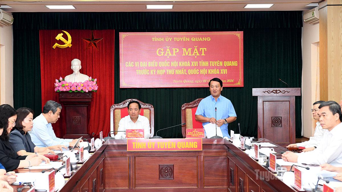 Đồng chí Ngô Đông Hải, Ủy viên Ban Chấp hành Trung ương Đảng, Phó Trưởng ban Tuyên giáo và Dân vận Trung ương cùng các vị đại biểu Quốc hội khóa XVI tỉnh Tuyên Quang dự buổi gặp mặt.
