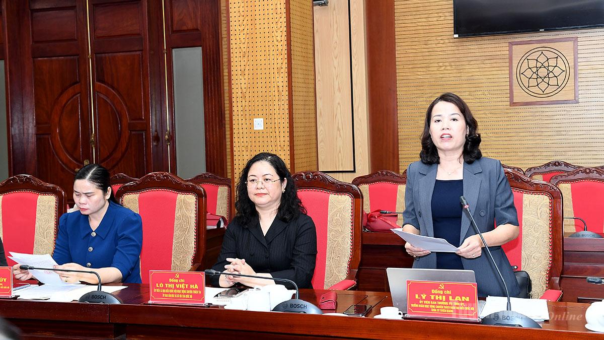 Đồng chí Lý Thị Lan, Uỷ viên Ban Thường vụ Tỉnh uỷ, Trưởng Đoàn ĐBQH hoạt động chuyên trách khoá XV tỉnh báo cáo công tác chuẩn bị tham dự Kỳ họp thứ Nhất, Quốc hội khóa XVI.