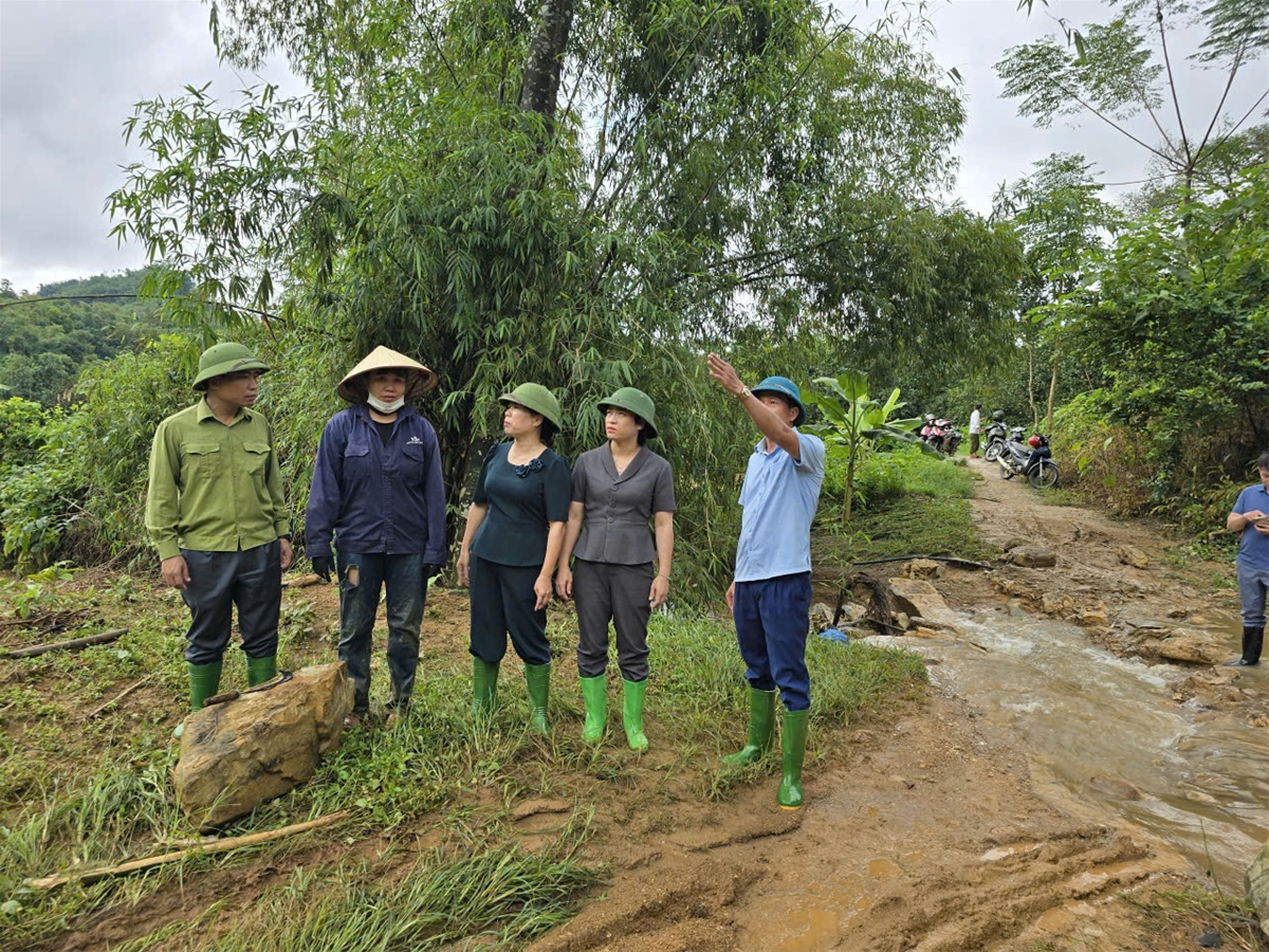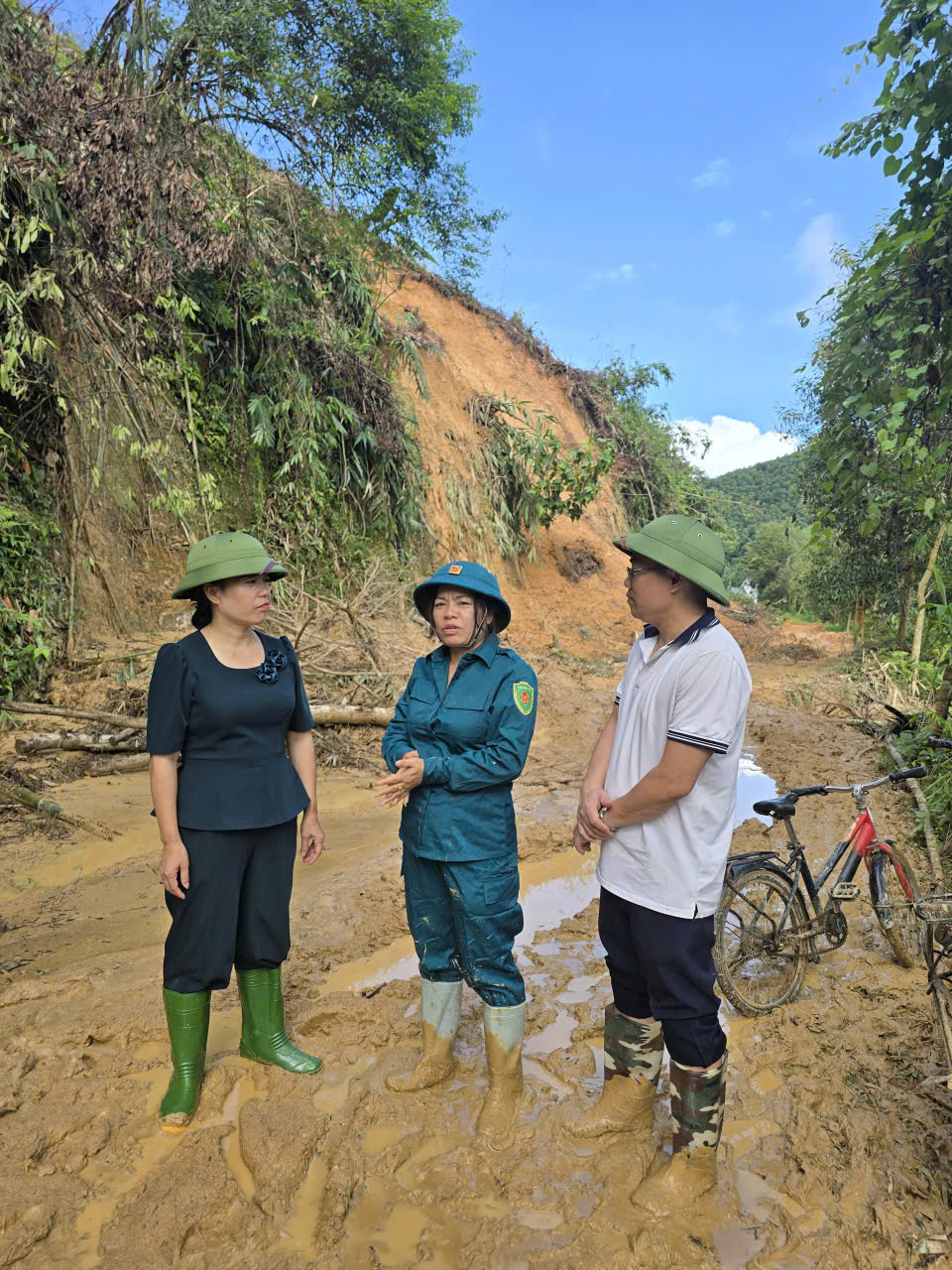 Trưởng đoàn ĐBQH tỉnh Lý Thị Lan trực tiếp kiểm tra tình hình sạt lở tại các xã.