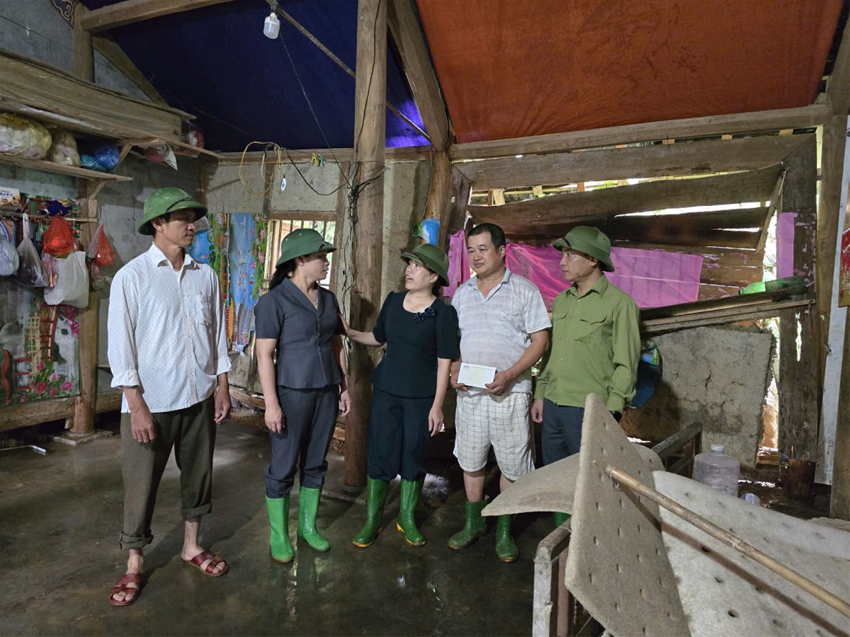 Đồng chí Trưởng đoàn bày tỏ sự đồng cảm, chia sẻ khó khăn, động viên các gia đình bị thiệt hại và mong muốn mọi người đoàn kết, nêu cao ý chí tự lực, nỗ lực vượt qua khó khăn. Đồng chí đề nghị cấp ủy, chính quyền địa phương tiếp tục hỗ trợ nhân dân sớm ổn định cuộc sống và cấp phát, sử dụng các nguồn hàng ủng hộ khắc phục hậu quả lũ lụt có hiệu quả.
