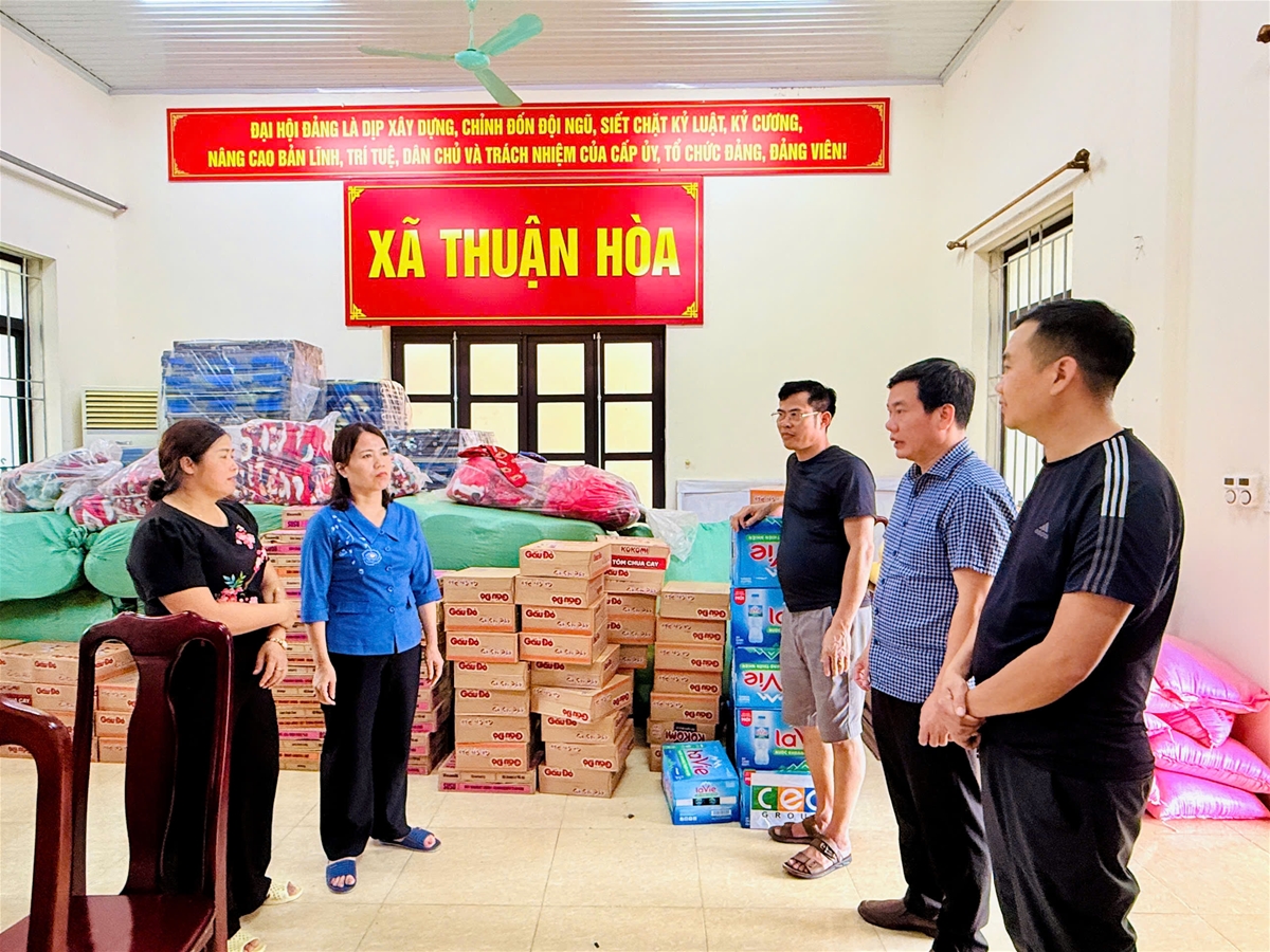 Tại xã Thuận Hòa, đoàn đã đến kiểm tra cơ sở vật chất Trường Phổ thông dân tộc bán trú Tiểu học B Thuận Hoà sau bão. Đồng thời hỗ trợ 2 tạ gạo, 50 thùng mì tôm, 15 thùng nước, 50 thùng sữa và quần áo cho người dân trên địa bàn. Bên cạnh đó, đoàn tặng gạo, nước sạch phục vụ nấu cơm từ thiện tại Chùa Quan Âm, phường Hà Giang 2.