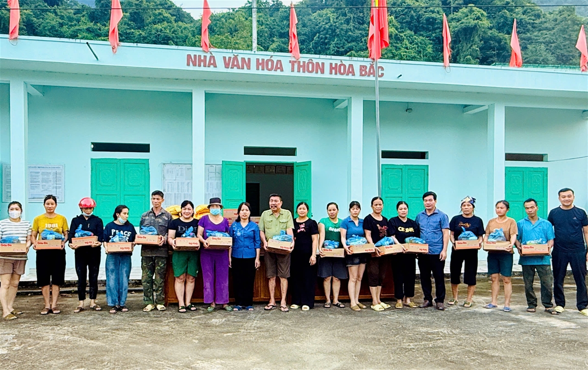 Đồng chí Lý Thị Lan, Uỷ viên BTV Tỉnh uỷ, Trưởng Đoàn ĐBQH hoạt động chuyên trách khoá XV tỉnh tặng quà và nắm bắt công tác khắc phục hậu quả thiên tai tại xã Thuận Hòa.