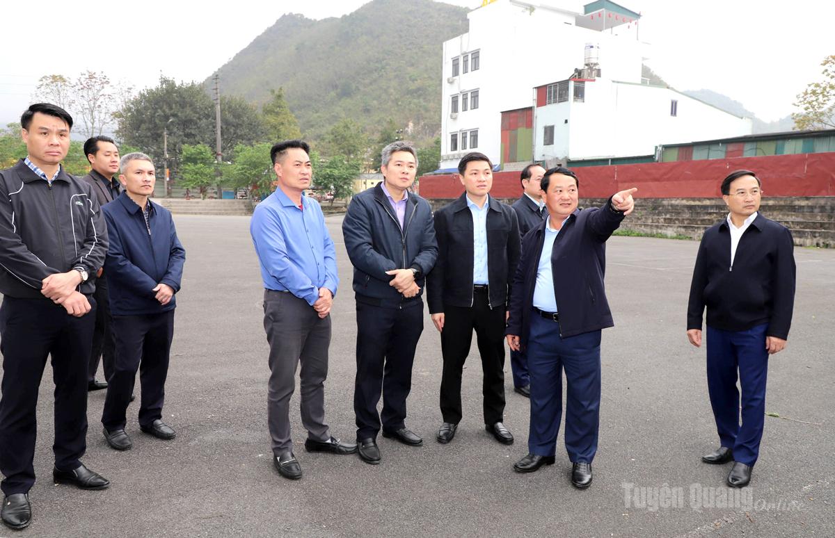 Bí thư Tỉnh ủy Hầu A Lềnh đi khảo sát tại khu vực dự kiến xây dựng Quảng trường xã Quản Bạ.