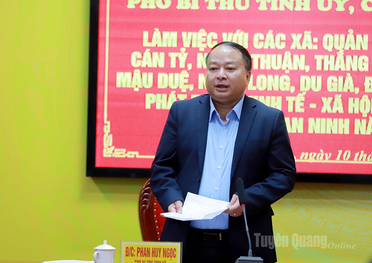 Chủ tịch UBND tỉnh Phan Huy Ngọc làm việc với Thường trực Đảng ủy các xã.