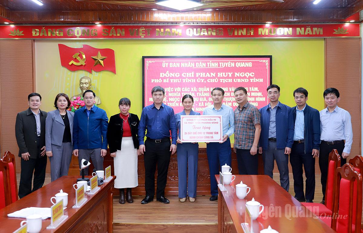 Nhân dịp này, Văn phòng UBND tỉnh đã trao hỗ trợ thiết bị của Công ty cổ phần đầu tư phát triển Phương Đông cho Trung tâm phục vụ hành chính công 12 xã.